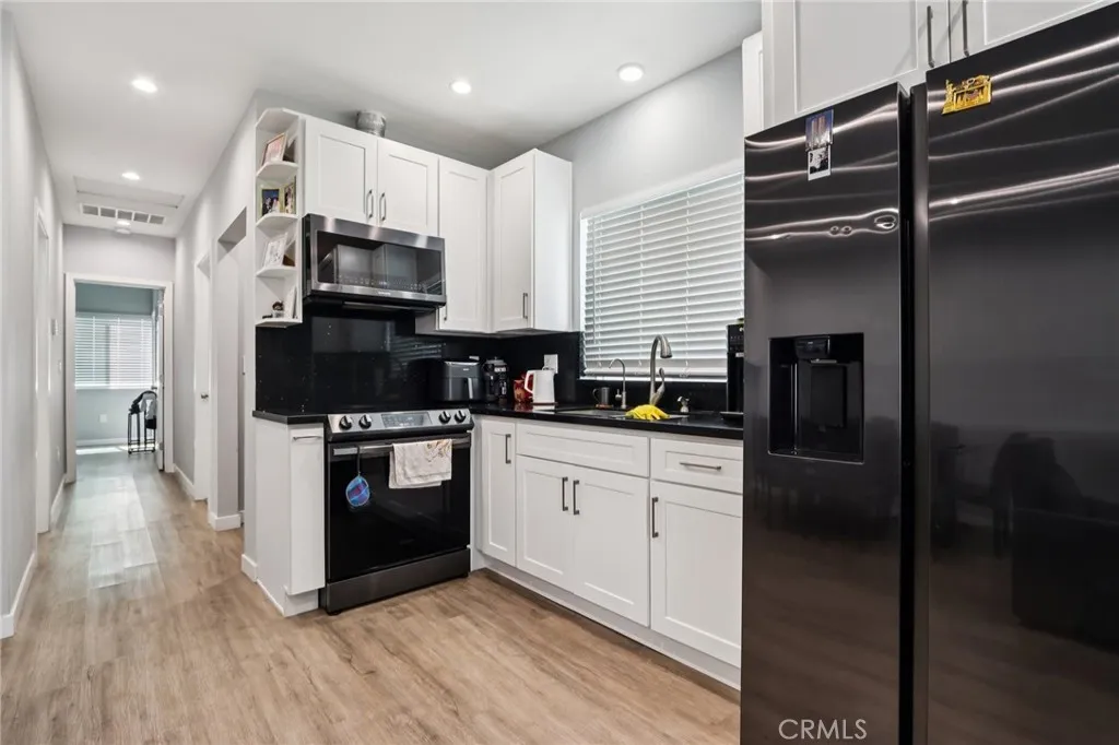 Incredible investment opportunity or ideal owner-user setup awaits with this exceptional gated property featuring 3 units on one lot. The main residence offers approximately 1,606 sq ft of thoughtfully updated living space, featuring 4 spacious bedrooms and 3 beautifully remodeled bathrooms. Upgrades include a modernized kitchen with newer appliances, stylish light fixtures, dual-pane windows, updated doors, and sleek laminate flooring throughout. The secondary dwelling is a newly constructed, fully permitted 867 sq ft ADU, designed with contemporary living in mind. This light and bright home showcases an open-concept floor plan with a spacious eat-in kitchen, inviting living area, and seamless access to a private patio and yard. The unit includes 2 bedrooms, 2 bathrooms, and a conveniently located laundry room just off the kitchen. Both residences enjoy private entrances and separate outdoor spaces, offering excellent privacy and flexibility. Additionally, the attached 1-bedroom, 1-bathroom guest unit comes with approved plans for a JADU, providing even more potential for added value and income. Perfect for investors or multi-generational living, this versatile property presents an outstanding opportunity to maximize rental income while enjoying modern comfort and convenience.