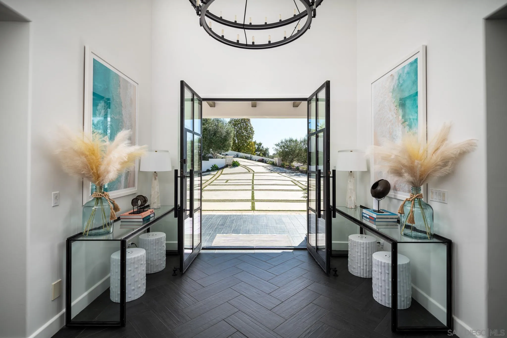 Some homes have views. This one owns the horizon. Perched at the pinnacle of Cielo, Rancho Santa Fe's most prestigious and coveted gated enclave, this breathtaking bespoke custom estate commands 270-degree panoramic views spanning the Pacific Ocean, Catalina Island, and the pristine Elfin Forest Reserve one of the most dramatic, irreplaceable, and sought-after view corridors in all of North County San Diego. Set on 2.55 sprawling acres at the community's highest elevation, this rarified setting is simply unmatched and unrivaled. Interiors reflect an unwavering and masterful commitment to curated global artisanship and refined modern luxury. Imported Moroccan tile, opulent Carrara marble, hand-laid Italian stone floors, soaring exposed wood beam ceilings, and an exquisite collection of bespoke lighting and statement chandeliers create a sophisticated, distinguished aesthetic that is both boldly contemporary and timelessly elegant. Every sumptuous finish is intentional. Every thoughtfully appointed detail speaks with authority. Beyond the walls, the magnificent estate transforms into an exclusive private resort. A custom pool and spa anchor expansive, beautifully appointed entertaining terraces designed for effortless and seamless indoor-outdoor living. A covered loggia with fireplace, a premium alfresco outdoor kitchen with artisanal wood-burning pizza oven, lush manicured grounds, and a flourishing curated private orchard complete a setting of unrivaled leisure, tranquility, and understated elegance. A grand, sweeping custom motor court delivers an arrival experience
