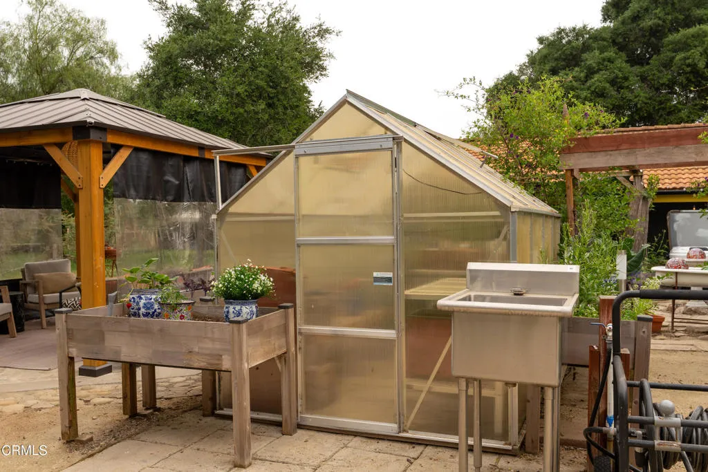 Discover your own private retreat, tucked behind a gated entrance on nearly an acre. Where rustic charm meets modern comfort with sweeping vineyard and hillside views. This thoughtfully renovated home features a warm open-concept layout, anchored by a spacious kitchen with large gathering island, and a premium Wolf range. Luxury vinyl plank flooring, dual-paned windows throughout, bonus family room with french doors. The primary suite boasts a relaxation space / closet. with a soaking tub, vanity area, built-in fan/bluetooth speaker creating a meditative environment that continues outside to the adjacent koi pond.Step outside into a serene and inspiring oasis - the grounds are designed for enjoyment and have endless possibilities. Winding decomposed granite pathways lead you past many gathering spaces, mature oak trees, large chicken coop, corral for livestock, and a greenhouse surrounded by raised beds - with an off-grid vibe, it's perfect for the hobby farmer. Spend sunny afternoons in the above-ground pool, or relax and star gaze from the bubbling spa. Versatile bonus spaces include a fully outfitted yurt, and four finished Tuff sheds. Perfect for guest overflow, creative studios, or work-from-home set ups. Located just minutes from Lake Casitas, local dining, and easy commuter routes, this property combines the quiet serenity of country living with accessibility--perfect for those seeking a warm, inviting, and truly unique ranch lifestyle.