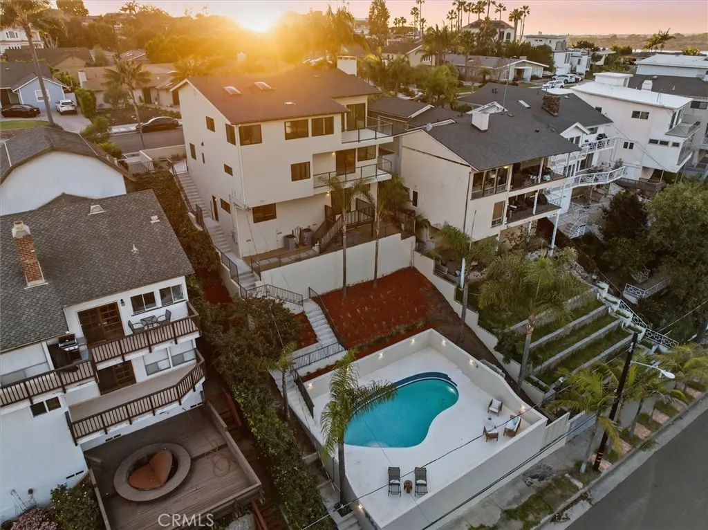 Welcome to Casa Calabar, a fully remodeled, move-in ready bluff home featuring 4 bedrooms, 3.5 bathrooms, an office, game room, and approximately 3,346 sq ft of living space. The expansive upstairs living room is bathed in natural light and offers stunning Marina and LA city light views. Vaulted ceilings, architectural arches throughout, and beautiful white oak flooring create an open, airy atmosphere perfect for relaxing or entertaining. Two fireplaces, a west-facing balcony, and multiple view decks showcase the very best of Westside living. The formal dining area flows seamlessly into the custom kitchen, complete with taj mahal quartz countertops, custom maple cabinetry, and state-of-the-art Thermador appliances. The upstairs office features custom built-ins and completes the main living level. The primary suite offers a walk-in closet and spa-like bath with dual vanities, soaking tub, glass-enclosed waterfall shower. Additional bedrooms offer flexibility for guests or growing households. The backyard includes a heated pool, modern landscaping, and multiple outdoor entertaining spaces captures the quintessential coastal lifestyle.