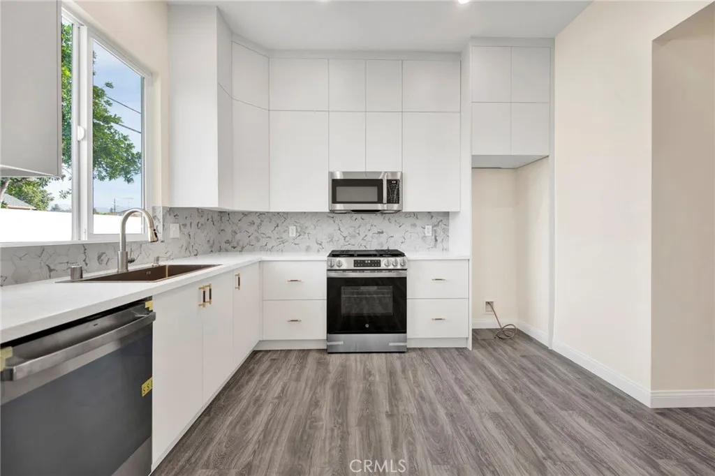 Experience modern luxury in this exceptional North Hollywood property featuring an extensively rebuilt and completely reimagined main residence with permitted additions, resulting in a home where very little of the original structure remains, along with a newly built ADU offering outstanding flexibility and privacy. The main residence offers approximately 1,995 sq. ft. with 4 bedrooms and 3 bathrooms, thoughtfully designed with soaring 10-foot ceilings and a bright open-concept layout that creates an impressive sense of space and comfort. A striking metallic double-door entry welcomes you into a spacious living area highlighted by a sleek electric fireplace, perfect for relaxing or entertaining guests. The designer kitchen showcases a modern aesthetic with a large center island, contemporary cabinetry, premium finishes, and new appliances, seamlessly connecting the kitchen, dining, and living areas to create an ideal flow for everyday living. Quality construction and attention to detail continue throughout the home, including a premium 3-layer presidential shingle roof, contemporary finishes, and carefully curated materials that deliver both durability and style. Only high-quality materials were used throughout the construction, reflecting a no-corners-cut approach and a strong commitment to craftsmanship. The property also features a private backyard dedicated to the main residence, offering an inviting outdoor space for gatherings, relaxation, or future landscaping possibilities. The newly constructed ADU offers approximately 825 sq. ft. with 2 bedrooms and 2 bathrooms, c