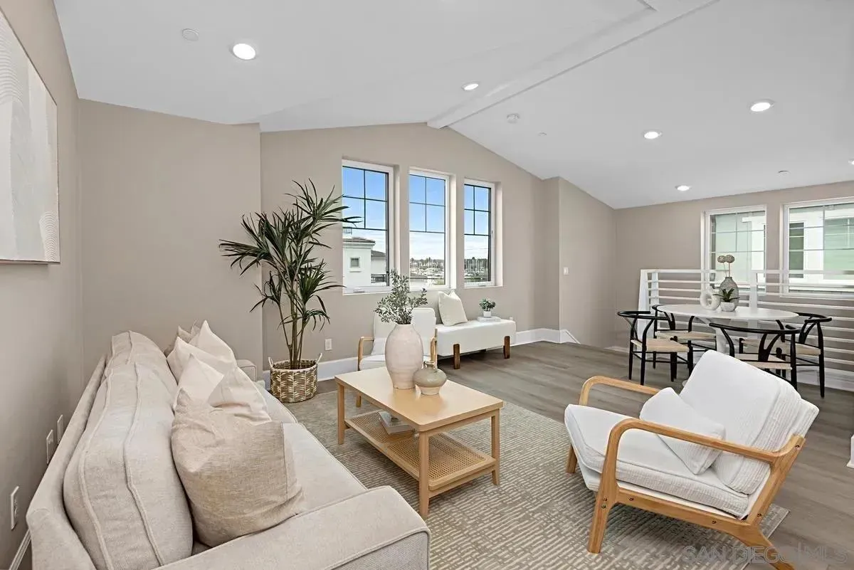 Bright, beautiful, steps to the water, and the best price for a 3bd in Mission Beach! Come take a look at this VA Approved townhome built in 2021 and see what coastal living here really feels like. The home has clean, modern finishes including quartz counters, stainless appliances, white cabinetry with soft-close drawers, and the convenience of an in-home washer and dryer. You will also have mini-split heating and A/C, solar power, and a private two-car garage. Set in Bayside Cove between Mission Beach and Mission Bay, the location makes everyday life easy. You are a short walk to the boardwalk, Belmont Park, and some of the best local dining. Mission Bay is just steps away for paddle-boarding, kayaking, sailing, or simply sitting by the water at sunset. Ocean breezes and evening light are part of the routine here, not a weekend luxury.