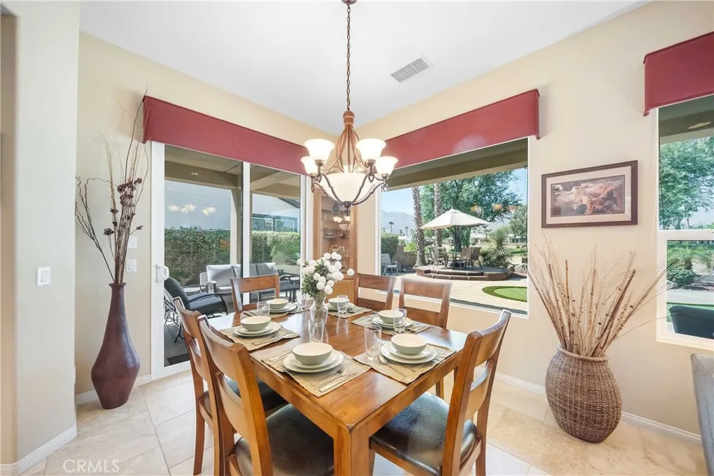 Welcome to Casa Puesta del Sol, a beautiful 3-bedroom, 3-bathroom home in the sought-after Trilogy at La Quinta community, where desert luxury meets everyday comfort. The spacious Monarch floor plan features a bright, open layout with elegant tile flooring throughout the main living areas. The great room, complete with a cozy gas fireplace, is ideal for cool desert evenings, while large west-facing windows frame stunning views of the Santa Rosa Mountains and the golf course. The gourmet kitchen comes fully equippedwith appliances including a coffee maker, espresso machine, slow cooker, blender, and moremaking it easy to prepare anything from a quick breakfast to a dinner party. A dedicated office with a desktop computer and printer offers the perfect space for remote work or quiet reading. Each bedroom is generously sized, with the primary suite offering an en-suite bath with dual vanities and a luxurious shower. A private casita provides guests with their own comfortable retreat, complete with TV, storage, and full bathroom. Outdoors, you can practice on the backyard putting green, relax under the retractable shade in the master bedroom, or gather around the fire pit and gas barbecue for sunset evenings. As a guest, youll enjoy access to Trilogys resort-style amenitiesincluding multiple pools and hot tubs, a bocce ball court, pickleball and tennis courts, a well-equipped fitness center, Caf Solaz, and the on-site Coral Spa. Whether youre seeking a winter getaway or year-round living, Casa Puesta del Sol offers the perfect blend of leisure, convenience, and luxury. Security