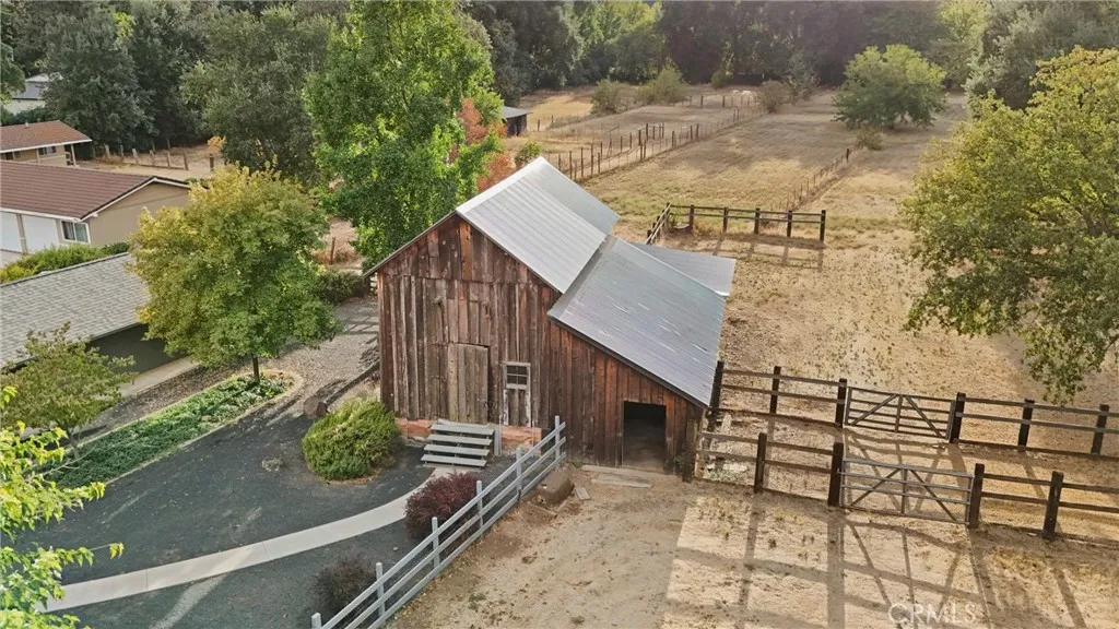 One Of A Kind Property Near Bidwell Park! This beautiful and unique 3 bedroom 2 bath home built in 1920 sits on just under 2 acres and is situated down the street from lower Bidwell Park! With its serene setting, gorgeous remodeled kitchen, high ceilings, tons of windows allowing for great natural light, detached workshop, barn, pastures, fantastic location and more - this home will not last long! The stunning remodeled kitchen features marble counters, a kitchen island, wood floors, plenty of storage, and a bar area and is open to the dining room and family room, which has French doors leading to the deck and fantastic backyard - perfect for entertaining. There is also a separate living room with wood paneled beamed ceilings and a brick fireplace that leads to the primary suite in this split floor plan home. The primary suite has French doors leading to the back deck, wood paneled beamed ceilings, a walk-through closet, and a unique tile bathroom with a shower and extra storage. The large detached workshop building with 2 rooms has high ceilings, hot and cold water, and a dark room, making it great for an art studio, office, projects, storage and more! The beautifully landscaped yard has concrete patios, pomegranate and dogwood trees, looks out to the corral and pasture with troughs and water for horses, and has a pathway leading to the iconic and well maintained spacious barn, which has 4 horse stalls. Additionally, there is a whole house fan, indoor laundry, and a brand new roof for both the home and workshop! This home is an absolute gem and truly one of a kind! Dont mi