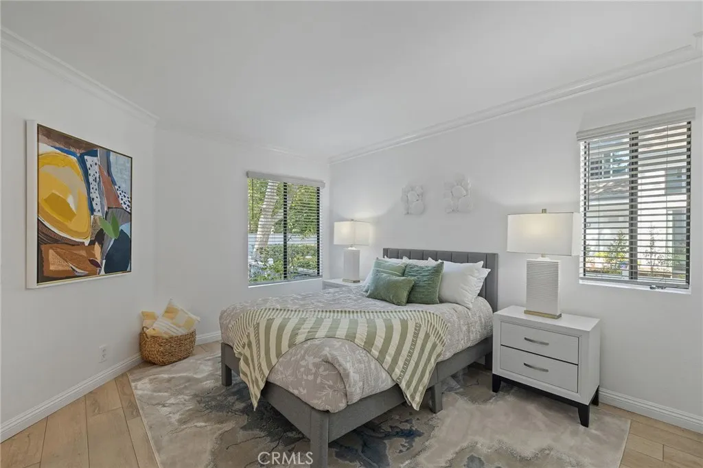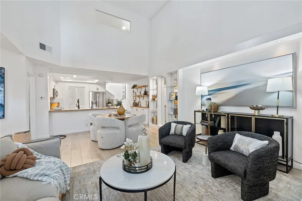 Welcome to 83 Briarglen, located in the highly desirable Woodbridge community of Irvine. Master Suite on the main level. This beautifully upgraded end unit townhome offers 2 bedrooms plus an office which can used for a 3rd bedroom and 2 full bathrooms, including a convenient main-floor bedroom and full bath. Flooded with natural light, this end unit features an open-concept floor plan with built-ins, numerous windows, vaulted ceilings, and a cozy fireplace that creates a warm and inviting atmosphere. The sliding door opens to a spacious private patio, providing a serene outdoor retreat perfect for entertaining or relaxing. The updated kitchen offers edge grain butcher block countertops, stainless steel appliances, an apron farmhouse sink, and ample linear design cabinetry. The in-unit laundry room is conveniently located just off the kitchen. Upstairs, the spacious primary suite offers privacy and comfort, while an enclosed loft area provides a versatile space ideal for a home office, guest room, or den. Additional highlights include wide plank engineered hardwood floors throughout, including the stairs, recessed lighting, and a detached, enclosed one car garage. Located just steps from Briarglen Park, offering a swimming pool, spa, volleyball court, and large grassy areas perfect for outdoor fun. Enjoy the exceptional amenities of the Woodbridge community, including lakes, Lagoons, additional pools, spas, tennis courts, and parks. Situated in the award-winning Irvine Unified School District. World-class shopping, dining, and easy freeway access complete this fantastic oppo