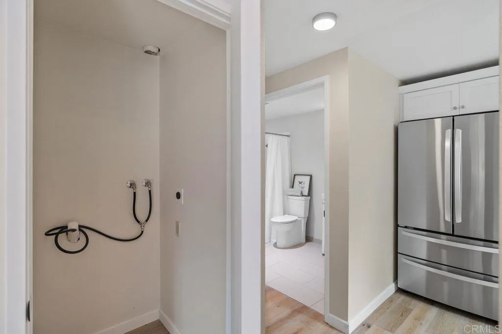 This rarely available, single-level, bright, contemporary home in the sought after La Jolla Park Villas is a masterclass in open design with a corner location and no neighbors above or below offering a unique sense of privacy with easy access to the park. Vaulted ceilings create an expansive, airy atmosphere that defines the homes thoughtful updates with newer windows and tree views into the park. The open concept, bright, inviting living area flows effortlessly to the remodeled kitchen with an updated bathroom and contemporary flooring and lighting. The bedroom offers flexible functionality, with optional sliding access to the living room to enhance flow and light. A generous walk-in closet with attic access supports the desirable design ethos: clean lines and smart storage. Your private patio seamlessly extends the living space with more views of the park trees. The indoor laundry and carport with additional storage complete the picture. Perfectly located near UCSD, the trolley line, shops, dining, beaches and everyday essentials, this home blends peaceful living with prime convenience.