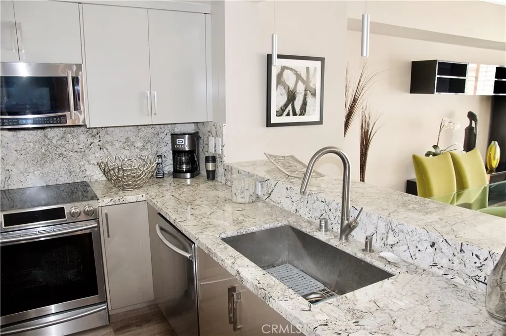 WHERE ELEVATION DEFINES DISTINCTION. This fully remodeled penthouse is absolutely stunning, with every detail thoughtfully designed for effortless coastal living. The chefs kitchen has been completely transformed, down to the last detail, featuring custom cabinetry, granite countertops, and professional grade stainless steel appliances, perfect for entertaining or everyday living. The bathrooms are spa inspired retreats, each meticulously designed to combine luxury and tranquility. Rich wood floors, an open concept layout, and walls of glass frame breathtaking views of the Pacific Ocean, Rainbow Harbor, and the Queen Mary. Every element of this 2 bedroom, 2 bath, 1,587 square foot home has been carefully curated, making it completely move in ready. Here, the elegance and comfort of a large, luxurious home are captured in a sophisticated, low maintenance lifestyle, plus the vibrant energy of the Pacific High Rise is right below your feet. Enjoy premier dining, exclusive clubs, and social experiences just steps from your door. Two dedicated parking spaces, on site storage, and access to concierge services, a guest suite, and resort style amenities complete this rare coastal lifestyle. Turnkey, elevated, and undeniably exceptional, this penthouse is where elegance meets the Pacific.
