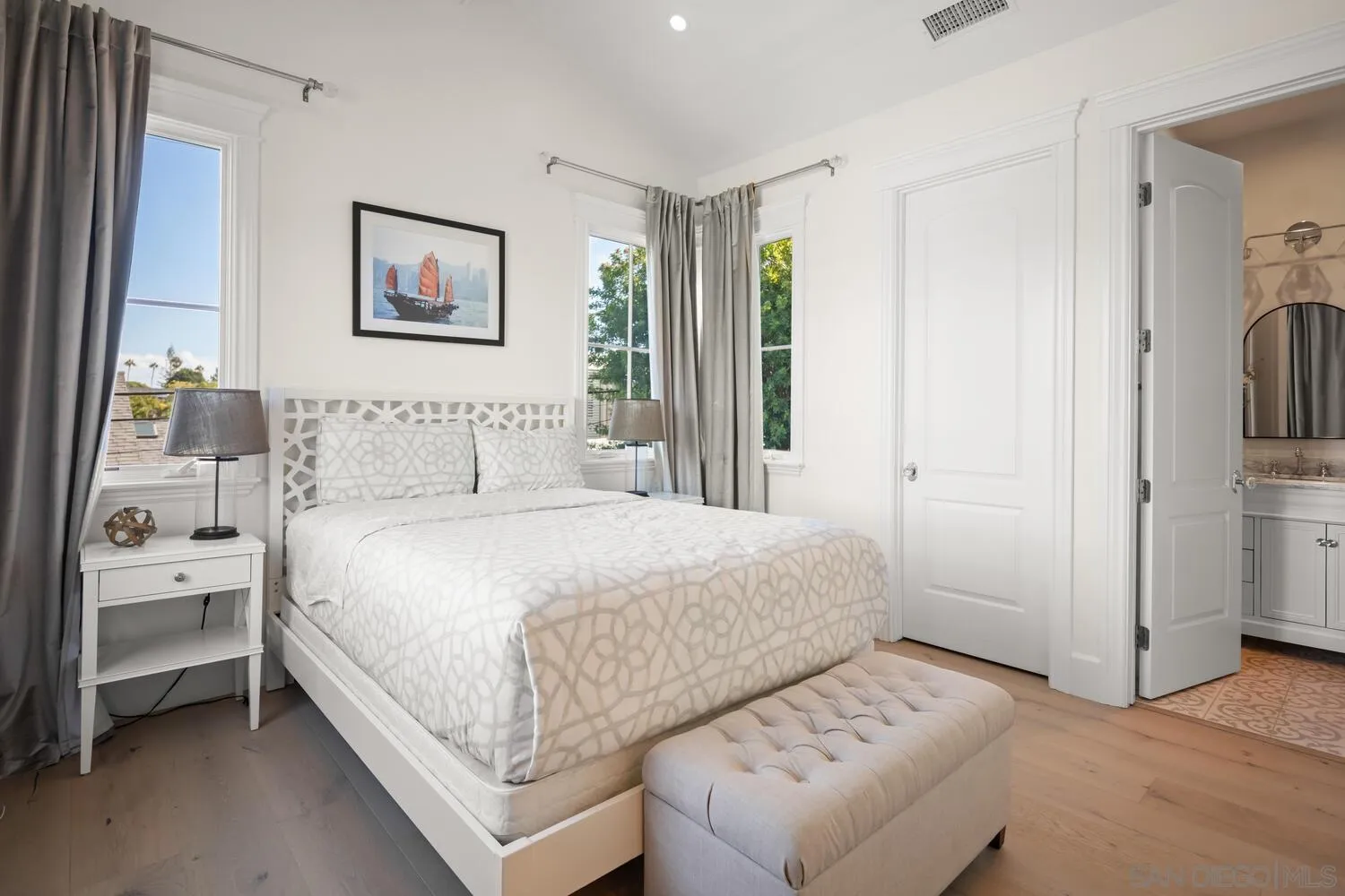 Perfectly situated on a generous 7,500?+sq.ft. lot, this stunning residence blends timeless elegance with thoughtful modern design. The main home offers 4 en suite bedrooms plus a den, compl?emented by a beautifully appointed 1-bedroom casita featuring its own living room and wet bar — ideal for guests or extended family. Inside, new white oak floors flow throughout the home, setting the stage for the newly reimagined first floor. The formal dining room exudes sophistication with designer finishes, while the butler’s pantry is a host’s dream — complete with a wine fridge, refrigerator drawers, ?ice maker and filtered water bottle refill station. The kitchen has been expertly reconfigured with both beauty and function in mind, offering a seamless flow for cooking and entertaining. Everyday living is made effortless with ?owned solar panels and a convenient “drop zone” just off the garage — perfect for organizing backpacks, shoes, and sporting gear. Outside, the spacious yard invites gatherings, alfresco dining, or simply relaxing under the Coronado sunshine. A rare opportunity to own a thoughtfully redesigned home in one of Coronado’s most sought-after neighborhoods — Country Club Estates.