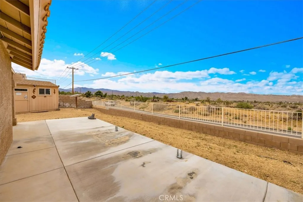 Spacious 4 bedroom, 3 bathroom single-story home positioned on a corner lot with wide open desert and mountain views. The layout offers an open living and dining area centered around a fireplace, with large windows bringing in natural light and views. Kitchen features granite counters, oak cabinetry, breakfast bar seating, and stainless steel appliances, with an open floor plan. The covered patio spans the length of the home, ideal for relaxing or entertaining. Low maintenance landscaping with desert plantings keeps upkeep simple. Nice spacious fenced yard. Additional highlights include a 2-car attached garage, extended driveway with ample parking, and a covered RV parking structure with hookups. Property also features solar at $126 month. Conveniently located near schools, shopping, and local amenities with easy access to surrounding desert recreation and hiking areas.