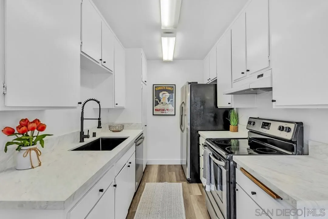 Nice upstairs corner 1 bedroom condo available immediately. Situated in a garden-style setting, this condo offers new carpet and vinyl plank flooring, new paint, ample closet space, beautiful kitchen countertops, mirrored closet doors, large balcony with storage closet. Easy access to and from parking. Easy access to I-5 and SR-52. Villa La Jolla offers 2 swimming pools, 2 Jacuzzi's, a fitness center and a clubhouse. This is an unfurnished condo.