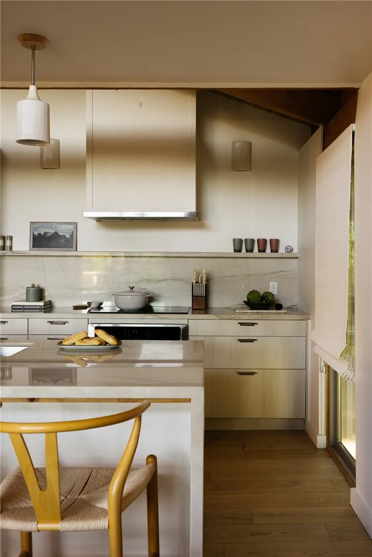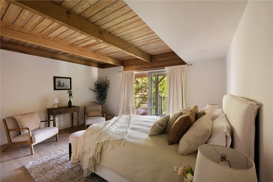 Architecturally unique and impeccably updated, this mid-century modern retreat offers elevated living in a serene mountain setting. Positioned at the end of a quiet cul-de-sac and set down a private drive, the home is surrounded by mature cedar and blooming dogwood, creating a peaceful, tree-wrapped escape. The residence honors its mid-century roots while embracing sophisticated modern updates. Expansive wood-planked ceilings add warmth and dimension, while dramatic walls of glass capture panoramic forest views and bathe the interiors in natural light. The architecture feels intentional and expressive designed to bring the outdoors in. The main living space unfolds with an open, airy layout that seamlessly connects the living room, dining area, and kitchen. A striking waterfall marble island anchors the custom kitchen, offering both visual impact and functional elegance. Sliding doors extend the living space onto an expansive deck, creating effortless indoor-outdoor flow ideal for entertaining or quiet evenings among the trees. Five well-proportioned bedrooms provide versatility for hosting, retreating, or accommodating extended stays. Outdoors, a newly added jacuzzi is thoughtfully nestled beneath the canopy, offering a private, spa-like setting immersed in nature. Rather than a traditional backyard, the home embraces its natural topography with a flat yard, layered decking and intimate outdoor spaces designed for relaxation and connection to the forest surroundings. Modern amenities include air conditioning, upgraded systems, and a Tesla charging station blending conven