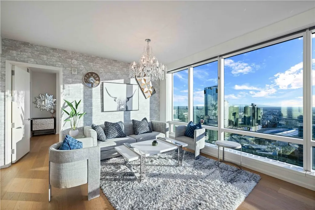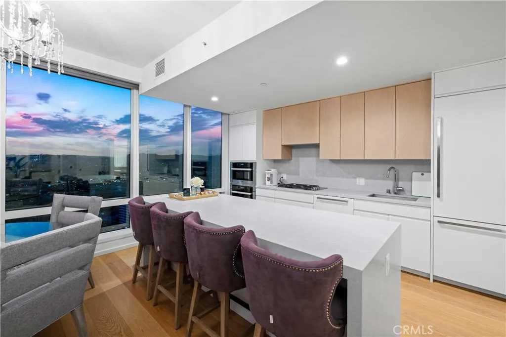 Experience elevated luxury on the 41st floor at Metropolis Tower II. This stunning 2-bedroom, 2-bath corner residence offers sweeping, multi-directional views of the DTLA skyline, Hollywood Hills, and dramatic sunsets through floor to ceiling windows that fill the home with natural light. The open layout features wide plank oak flooring, high ceilings, and a beautifully designed gourmet kitchen with Caesarstone countertops, custom soft close cabinetry, and premium Miele & Bosch appliances. The spacious primary suite includes a walk-in closet and a spa inspired bath with sleek contemporary finishes. Both bedrooms capture breathtaking views. Metropolis offers one of DTLAs best amenity collections, including a resort-style pool, cabanas, sky garden, fitness & yoga studio, billiards lounge, business center, putting green, childrens play area, dog park, plus 24/7 lobby attendant and concierge. Located steps from Crypto Arena, LA Live, the Financial District, South Park, world-class dining, shopping, and entertainment. Metropolis offers unmatched urban conveniences. Luxury high-rise living at its finest, welcome home to Tower II at Metropolis.