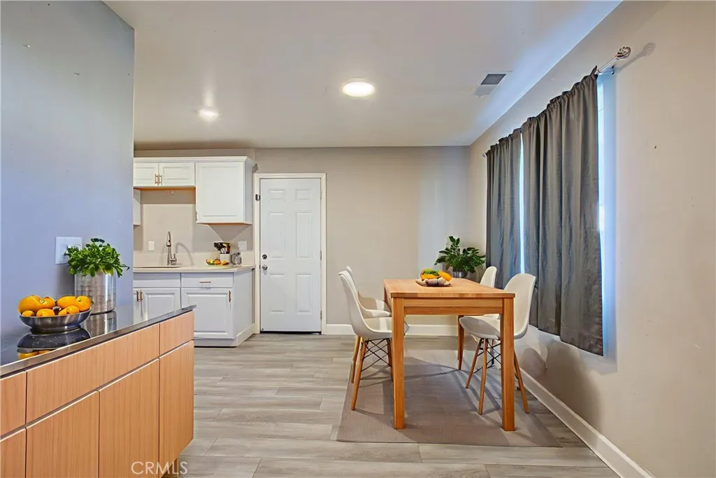 Well-maintained and updated single-story home located in a quiet Dos Palos neighborhood! This 3-bedroom, 1-bath home features a front lawn with an automatic sprinkler system and double-pane windows throughout. Inside, the family room offers durable laminate flooring and a comfortable space for everyday living. The dining area includes recessed lighting and opens directly to the kitchen, creating an easy and functional layout. The remodeled kitchen features quartz countertops, a breakfast nook, and a pantry closet. Appliances include a disposal, free-standing electric oven, gas oven, gas range, and refrigerator. All three bedrooms offer laminate flooring and closet space. The recently remodeled bathroom includes quartz countertops and a tub with a shower over. An inside laundry room adds convenience with extra cabinets and a utility sink. The backyard is low-maintenance and features a covered patio and wood fencing for privacy. Situated near local schools, parks, and everyday amenities, this home offers comfortable living with a simple layout and easy upkeep.