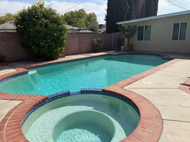 1 story home located in Panorama City. This charming home is gated with remote control . Front of the property has brick pavers and driveway has room for several cars. At the back it has a permitted storage all finished that could easily be converted to an ADU. Features: 3 BR, 2 BA, hardwood flooring in all bedrooms, living room and kitchen has tile flooring. Kitchen has granite counter tops. Newer air conditioner and heat. Entertainment backyard has porch and pool and spa . Lots of matured fruit trees.