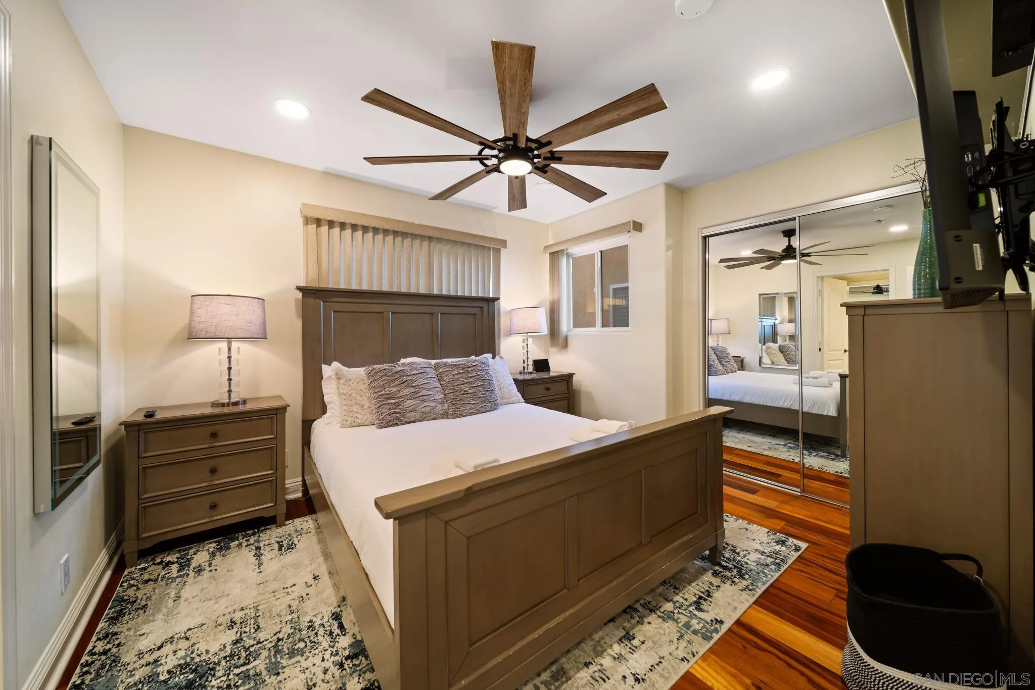 SHORT-, MID- & LONG-TERM FURNISHED RENTAL - Steps to Sand: Pacific Beach 3BR Townhome Just one block from the sand in the heart of Pacific Beach, this thoughtfully designed three-level townhome offers comfort, space, and rare convenience for coastal living. The home features three bedrooms, three bathrooms, and a layout that balances shared living areas with private retreats. A private underground garage provides parking for three vehicles with direct interior access, a rare amenity this close to the beach. The main living level includes a comfortable family room with sleeper sofa and TV, a fully equipped kitchen with wine refrigerator, dining table for six, and a private patio with BBQ and outdoor dining. All bedrooms are located on the upper level for added privacy. Two bedrooms feature queen beds and TVs and share a Jack-and-Jill bathroom, with a full-size washer and dryer conveniently located nearby. The primary suite offers a king bed, TV, fireplace, walk-in closet, ensuite bath with soaking tub and walk-in shower, and access to a private deck with seating. Spectrum high-speed internet, cable TV, and WiFi extenders provide reliable connectivity throughout. Sleeping setup accommodates up to eight guests. Rates vary by season and length of stay. Published amounts are estimates; final pricing, fees, and availability are subject to change until a signed agreement.