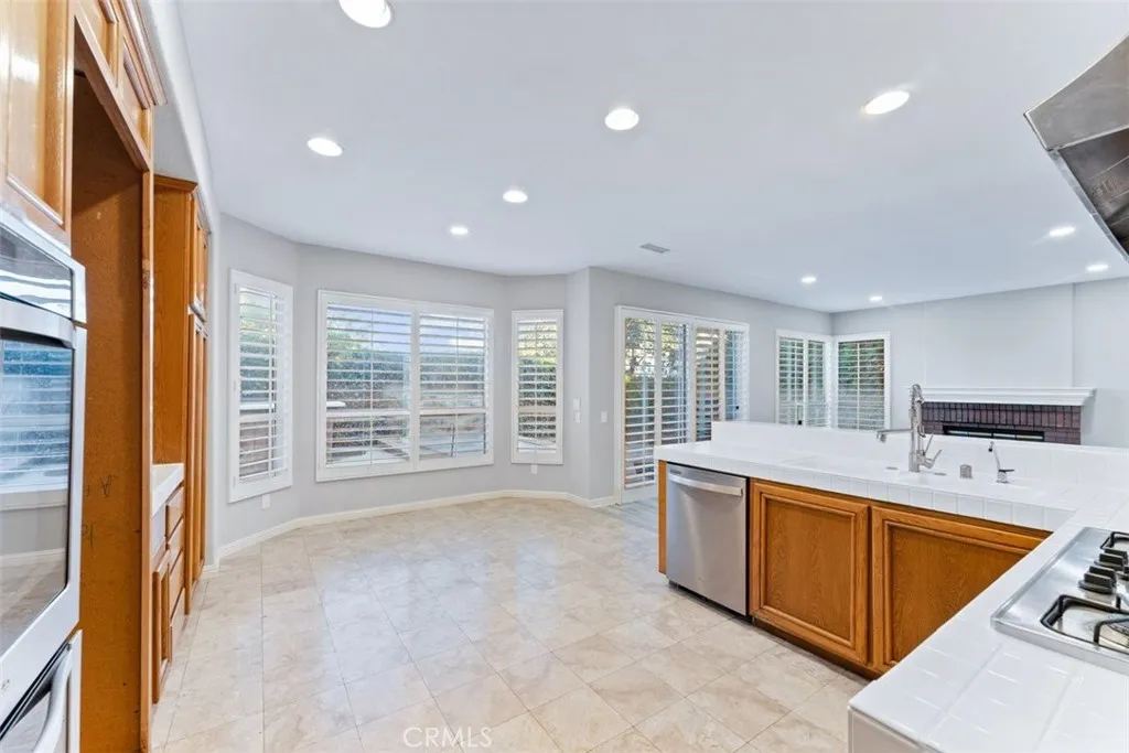 This is a special home, located behind the Dove Canyon 24 hour guard gated entry. The community features a pool and 4 lighted Tennis courts and a Member 18 hole Golf Course and Club House with restaurant. This floorplan features a nice sized living room with lots of natural light, a fireplace and two story ceiling. The inside laundry room with sink, cabinets and a window is located downstairs. There is a bedroom with walk-in closet downstairs and a full bathroom next to it. The formal dining room is separate with a walk through to the kitchen. The large kitchen features plenty of cabinets, a eating area with a ceiling fan and view of the backyard. The family room also has a fireplace, most rooms in this home have white, Plantation shutters. Upstairs you'll find a large Master Suite with a double door entry, dual bathroom sinks, a large walk-in closet plus a separate tub/.shower. There are two more bedrooms upstairs, with a Jack and Jill dual sink bathroom between them, also with a tub/shower. Be surprised when you walk down the hallway and find a large, secluded Bonus room with lots of natural light. The entire living area except the bathrooms and kitchen, features just installed laminate vinyl flooring. Kitchen and bathrooms have tile flooring. The interior was just freshly painted, it's ready for you to move in. Dove Canyon Center is just outside the entry gate, Santa Margarita Catholic High School is just a couple blocks away. Enjoy shopping and dining in Rancho Santa Margarita. Close to the 241 Toll Road too.