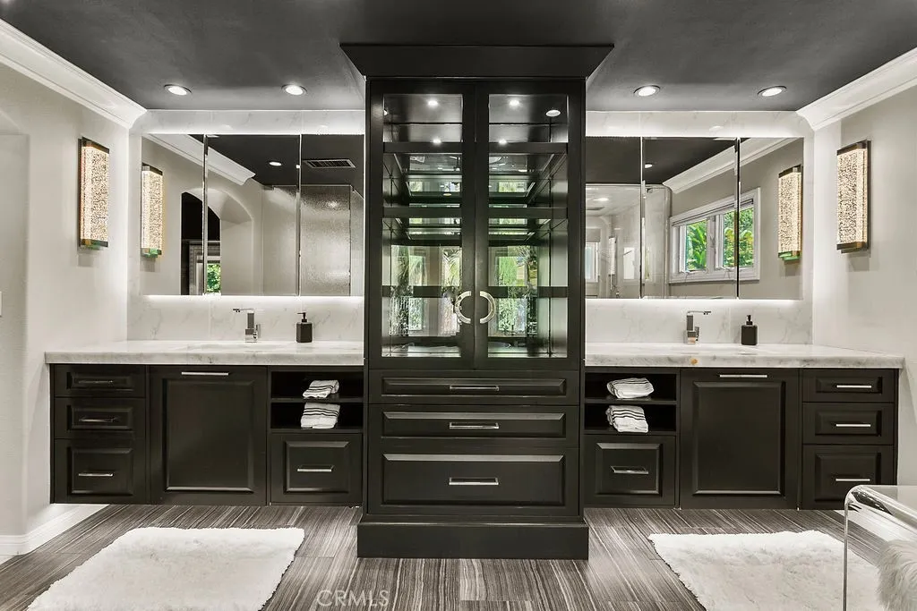 This magnificent 4-bed, 3.5-bath home, in guard-gated Ocean Ranch, delivers a harmonious blend of luxury and tranquility, the 4,005 sq ft estate captivates the moment you enter. A majestic foyer opens to elegant living and dining areas, with bespoke wall treatments, a warm fireplace, and tranquil views of the backyard and pool. Vaulted ceilings in the living room invite natural light, while the dining rooms coffered ceiling and adjustable lighting sets the mood. The remodeled gourmet kitchen showcases a generous island, breakfast bar, imported porcelain flooring, tailored cabinetry, and a Wolf gas range. A bright, inviting breakfast alcove features large windows and distinctive pendant lighting. The adjoining family room, highlighted by an angled fireplace and a chic wet bar, seamlessly integrates with the open layoutcreating a perfect backdrop for memorable gatherings. The main floor also offers an en-suite bedroom, powder room, and a spacious laundry room for ultimate convenience. Two staircasesa graceful main staircase and a functional secondary oneascend to the upper level, where a versatile bonus room and two additional bedrooms share a luxurious bathroom. The primary suite extends across the homes full width, with a two-sided fireplace, expansive sitting area and a scenic balcony. The lavish, oversized bathroom boasts a freestanding tub, shower, and under-lit Onyx stone cabinetry. In addition to abundant closet space, the primary suite also includes a separate, custom built, floor-to-ceiling, handbag and shoe closet. Outdoors, the oversized lot offers two beautifully