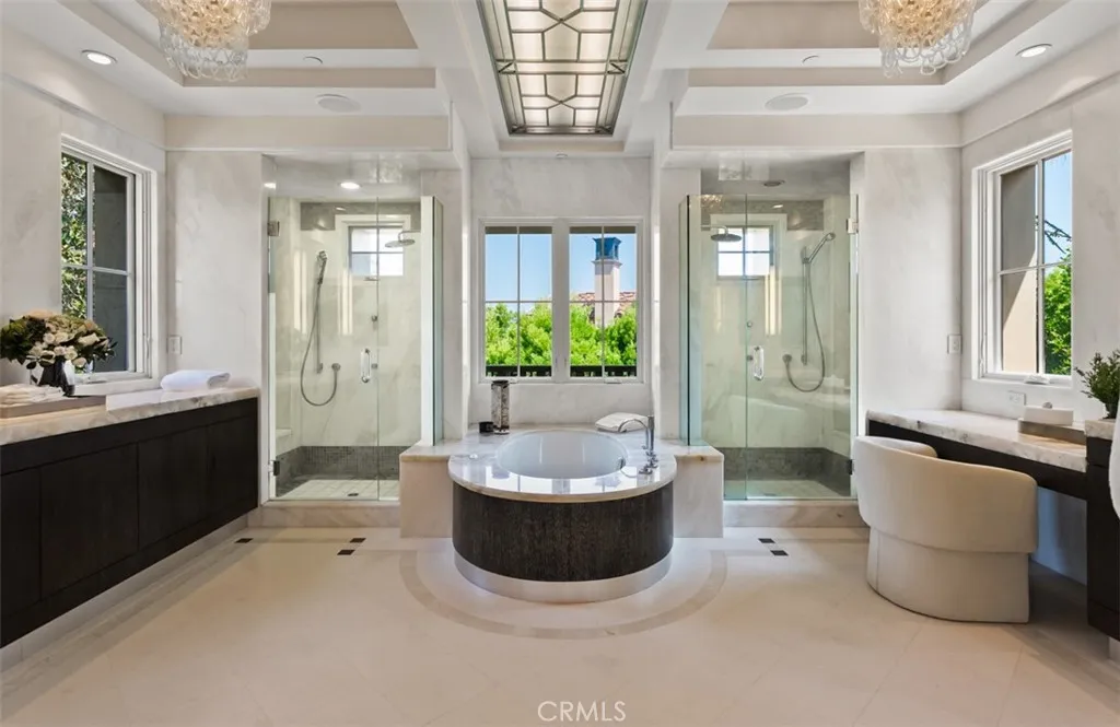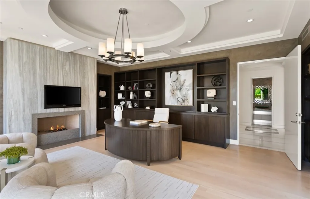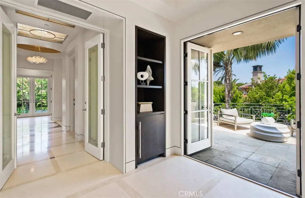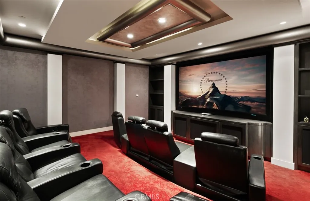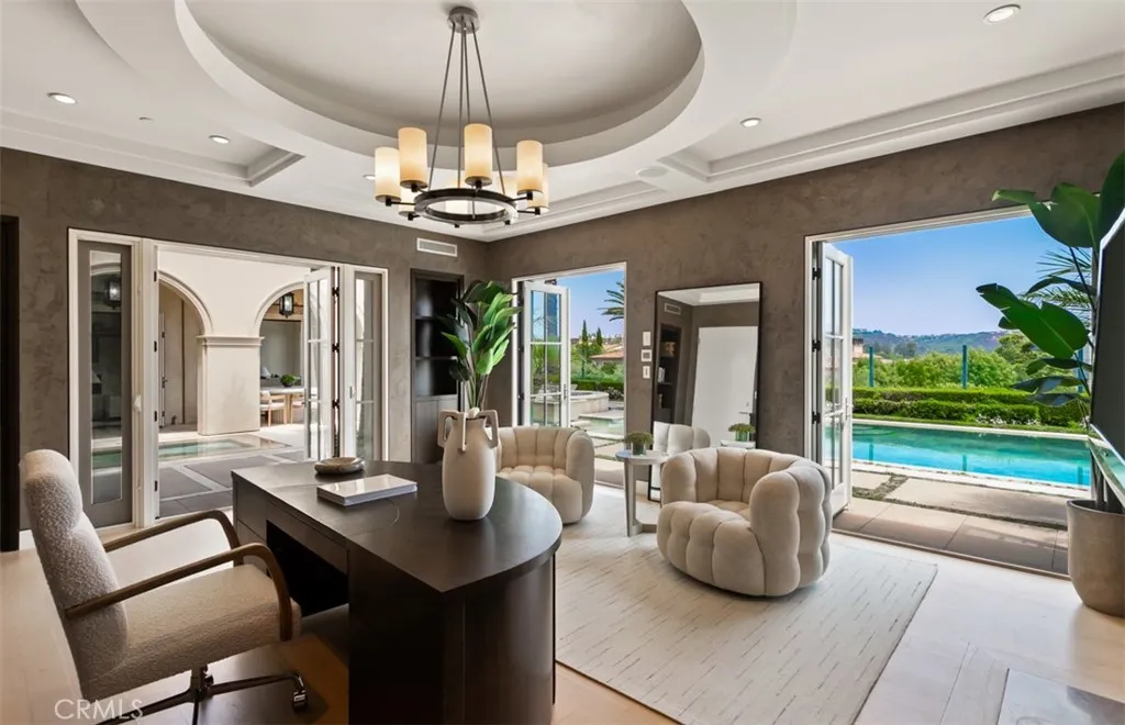 Situated within the prestigious guard-gated community of Pelican Crest, this remarkable custom estate offers approximately 10,310 square feet of refined modern European living, seamlessly blending timeless architecture with contemporary sophistication. Beyond the grand double glass-and-iron entry doors, a dramatic two-story foyer with a sweeping floating staircase and French limestone flooring sets the tone for the homes exceptional transitional design. Light-filled formal and casual spaces flow effortlessly, including a formal dining room with access to the grounds and a gourmet chefs kitchen appointed with Viking and Miele appliances, custom cabinetry, and elegant stone surfaces. The great room, anchored by a striking onyx fireplace and sophisticated wet bar, opens through three sets of French doors to the resort-like backyard, creating a natural extension of indoor and outdoor living. The lower level is dedicated to leisure and wellness, offering a steam room, sauna, gym, temperature-controlled wine cellar, and a state-of-the-art home theater with an adjoining lounge/game area. Upstairs, the luxurious primary suite features a spacious sitting area and spa-inspired bath with dual showers, under-lit onyx countertops, and a deep soaking tub. Additional bedroom suites each include their own beautifully finished bathrooms. Outdoors, the residences modern European influences are expressed through symmetrical design and the elegant use of thoughtful materials, creating a private resort setting complemented by breathtaking canyon and peekaboo ocean views. The grounds showcase an