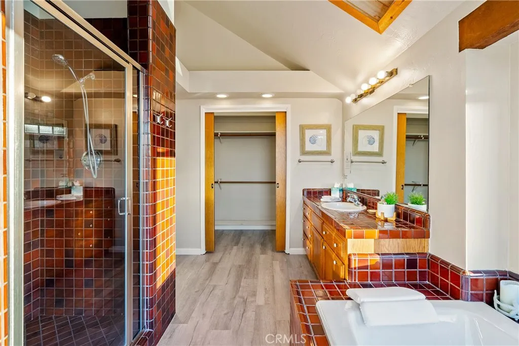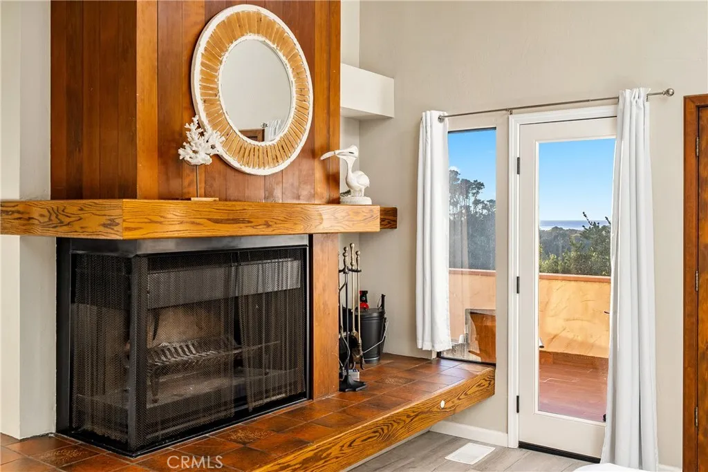 Welcome to this elegant gathering place for family and friends to spread out and fully enjoy the charming coastal village of Cambria. This licensed short-term vacation rential has enough room for all ages to play and relax while being only steps away from restaurants, shopping and wine tasting. Overlooking the rooftops and pine trees to the Pacific Ocean, Santa Rosa Creek and Moonstone Beach and epic sunsets you'll never grow weary of. This 3-bedroom, 3-bathroom home features two fireplaces, three decks, two of which have ocean views, and a shaded patio for play and creativity. From the two-car garage to the functional laundry/mud room, this home is comfortable enough to be a full-time residence with plenty of storage space and room for visitors. The primary bedroom is on the entry level and has its own fireplace, en suite bathroom with an ocean view from your bed, bathtub or your private deck. Downstairs, you enter the living room with another ocean view deck, tall ceilings and a fireplace. The functional kitchen and dining room are just steps up, with stainless steel appliances, colorful tile and a breakfast bar. The 2nd bedroom, hall bathroom, shaded patio and laundry are located on this level as well. The 3rd bedroom and 3rd bathroom are above the garage and have plenty of storage and its own kitchenette. It can also be accessed through the garage or its own entry door for private access. This spectacular property comes completely furnished and it is a LICENSED VACATION RENTAL, which is a rare and hard-to-come-by designation in Cambria.