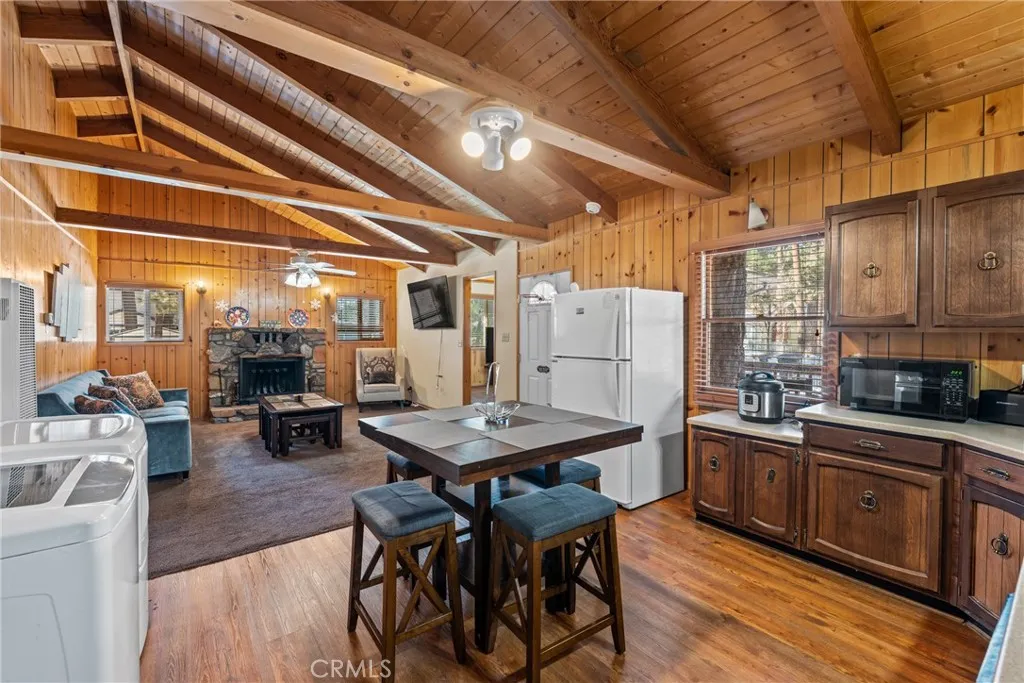 YOUR NEXT INVESTMENT PROPERTY AWAITS, WELCOME TO THIS AMAZING OPPORTUNITY TO OWN A NICE, COZY CABIN IN THE CITY OF BIG BEAR. THIS CABIN HAS BEEN FUNCTIONING AS A SHORT TERM RENTAL/VACATION HOME FOR ABOUT 10 YEARS. CABIN COMFORTABLY SLEEPS 6-8 PEOPLE AND COMES WITH ALL THE AMENITIES TO HOST AND ENTERTAIN GUESTS. PROPERTY IS ABOUT A 12-15 MIN DRIVE FROM THE SKI RESORTS, AND ABOUT A 3-5 MIN DRIVE FROM THE LAKE. CABIN WILL COME FULLY FURNISHED WITH EVERYTHING INCLUDED IN THE PHOTOS, 2 QUEEN SIZED BEDS, A SET OF BUNK BEDS WITH A SLIDE OUT BED IN THE "KIDS ROOM", ALL FURNITURE (COUCHES, TVs W/ STANDS, KITCHEN AND COFFEE TABLE) AND ALL APPLIANCES LARGE AND SMALL (STOVE, FRIDGE, WASHER/DRYER), INCLUDING ALL SMALLER COUNTERTOP APPLIANCES. PROPERTY INCLUDES A FRESHLY PAINTED DECK AND FRESHLY TOUCHED UP WOODEN SIDING, NEWER LAMINATE FLOORING AND NEW CARPET THAT WAS RECENTLY REPLACED. PROPERTY HAS A LOT TO OFFER, COME SCHEDULE A SHOWING!
