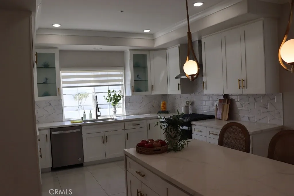 2004 BUILD HOUSE & 2024 FULLY REMODELED & UPGRADED NEAR CSUN. Bursting with contemporary character, this newly remodeled home offers stylish, laid-back living in a gated Northridge community! Creating an impressive curb appeal, mature trees, and a chic double-door entry welcome you. Across the open-concept layout, crisp white tones, high ceilings, and abundant natural light lend an inviting ambiance with guests or unwinding after a long day. Ceiling fans and eye-catching lighting adorn the main gathering areas as striking wood-style flooring cascades underfoot. Ideally designed for effortless entertaining, the fireplace-adorned family room and dining area enjoy a seamless flow to the kitchen. Lush outdoor views keep the home chef inspired in the culinary space, equipped with stainless steel appliances, shaker-style cabinetry, and a waterfall island with seating. Picture windows continue to the primary suite and usher in warm sun to begin the day. Oversized glass sliders bring you to the private backyard that offers a covered patio for hosting alfresco get-togethers and beautiful water fountains. Easy Access to CSUN, the fashion center, restaurants and award winning schools. You don't want to miss this!