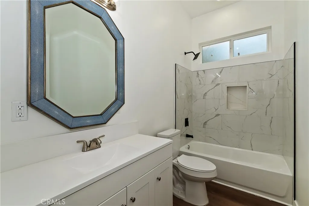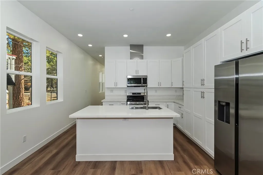 Experience modern mountain living in this stunning 2026 build in Big Bear City ~ Enjoy soaring 10' ceilings with 8 doors on both levels that create an open, airy feel throughout, with an abundance of large windows that allow natural light to pour into this home ~ This beautifully designed home features 3 bedrooms upstairs, including a master suite with sliding glass doors to a small balcony, and a laundry closet right outside the master, in the hall ~ An additional guest bathroom is located between the two guest bedrooms upstairs ~ A convenient full bathroom downstairs ~ Under-stairs storage area with full size door ~ Recessed lighting throughout ~ The kitchen is equipped with stainless steel appliances, quartz countertops, and single basin sink ~ Comfort and efficiency are enhanced with a tankless water heater, paid-for solar panels (14 panels at 3.5KW), an electric heat pump utilizing forced air for heating and cooling, and fire sprinklers for peace of mind ~ The 1-car attached garage adds convenience, while the contemporary finishes make this home move-in ready ~ Walking distance to Big Bear Snow Play, and the Convention Center, home to Big Bears Annual Alpine Oktoberfest ~ Whether its full-time living, a second home, or investment, this one will not disappoint ~ A towering home amongst the towering pines ~ Explore this opportunity to own a brand-new home in a prime Big Bear location!