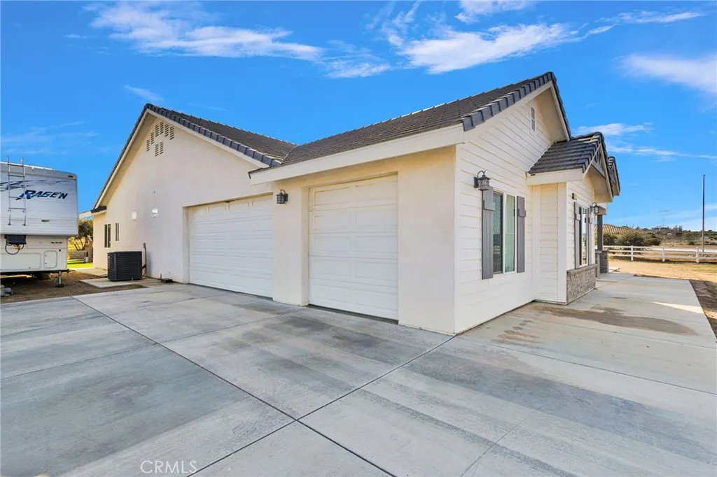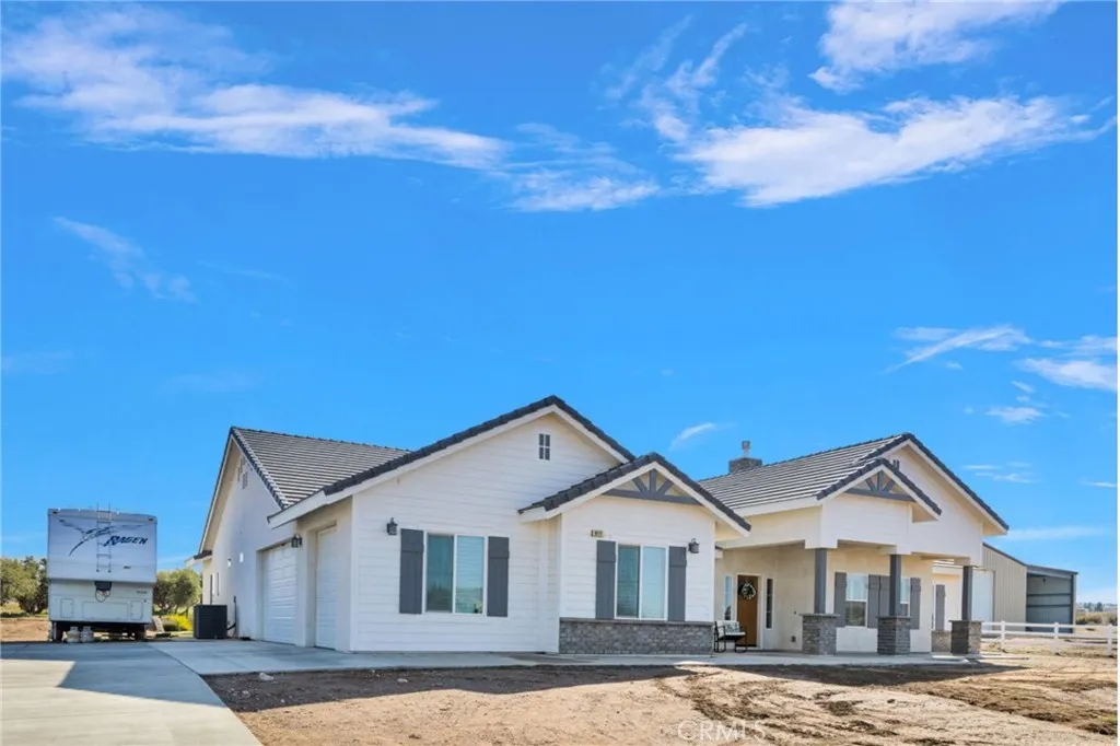 Welcome to this custom-built 2020 home located in the High Deserts sweet spot! Designed with comfort and efficiency in mind, this home features owned solar, and tankless water heater helping keep energy costs low. The attractive stucco exterior with finished eaves creates great curb appeal, while inside youll find a spacious living area with open-beam ceilings, creating an airy setting perfect for relaxing or entertaining. The custom kitchen cabinetry offers both style and abundant storage, while plank-style tile flooring throughout provides durability and easy care. Step outside to a generous lot stretching from front to back, offering space and privacy. The backyard features low-maintenance artificial turf, perfect for enjoying the outdoors without the upkeep. On the garage side of the property youll find RV parking with added utility hookups, ideal for your RV or accommodating out-of-town visitors. Seeing is Believing, so make your private showing appointment today!