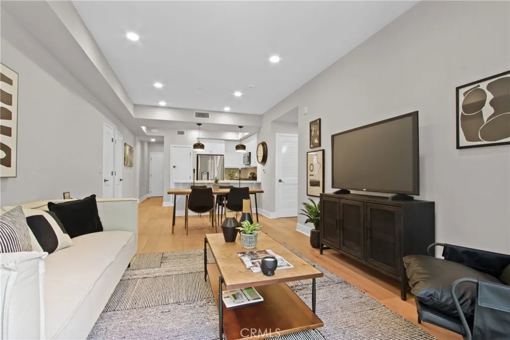 La Sevilla is a brand-new collection of 75 upscale single-level condominiums in the prestigious Rolling Hills Estates, seamlessly combining comfort, simplicity, and modern design. Plan G features an open concept living and dining area that flows effortlessly onto a private balcony, creating a perfect blend of indoor relaxation and outdoor enjoyment. The home showcases elegant finishes, including wide-plank hardwood flooring throughout, quartz countertops, a full tile backsplash, and a premium LG stainless-steel appliance package with a French-door refrigerator, built-in microwave, gas range with AirFry, and dishwasher. The spacious primary suite includes a luxurious bathroom with a glass-enclosed shower, bathtub, quartz counters, designer porcelain tile, and stylish stainless-steel accents. Residents have access to a grand courtyard with inviting sitting areas and a dual fireplace, as well as a modern fitness center, remote-work lounge, community room, and a barbecue area with a firepitideal for gatherings and leisure. Situated on the scenic Palos Verdes Peninsula, La Sevilla offers the tranquility of a high-end neighborhood combined with exceptional walkability. Just steps away are Peninsula Center shops, the public library, grocery stores, coffee shops, and a variety of local restaurants. Additionally, the community is minutes from scenic hiking trails and the stunning beaches of Palos Verdes, making it easy to enjoy outdoor adventures and coastal beauty.