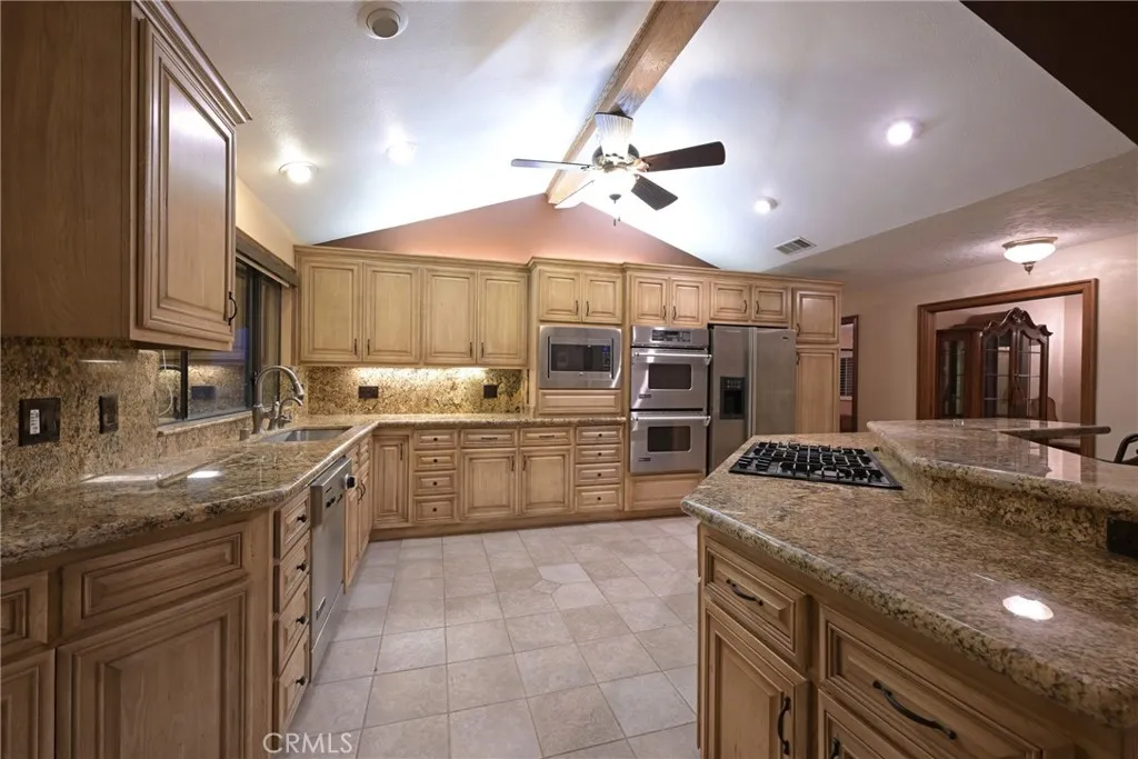 Welcome to a rare equestrian retreat in the heart of Corona. Tucked away at the end of a quiet street, 9330 Gum Tree Drive offers exceptional privacy, space, and custom craftsmanship on a beautifully improved horse property. This expansive single-story ranch home features approximately 3,000 sq. ft. of living space with 3 bedrooms, 2.5 bathrooms, plus a dedicated office with custom built-ins that can easily serve as a 4th bedroom. A permitted addition enhances the home with a large, private formal dining room located directly off the kitchen, creating an ideal setting for entertaining, family gatherings, and holiday meals. The remodeled kitchen is a true centerpiece, showcasing custom cabinetry, granite countertops, soft-close hardware, and premium Jenn-Air appliances. Recent upgrades include new carpet, tile, and wood flooring, Low-E windows, enhanced insulation, a tankless water heater, and a whole-house attic fan for year-round comfort and efficiency. Outdoor living is equally impressive with a Trex custom rear deck, and an expansive brick and concrete patio with fire pit, perfect for relaxing evenings or entertaining guests. The property is thoughtfully designed for equestrian use with a BarnMaster 4-stall barn, tack room, storage, arena, wash rack, hay and tool storage, and a hot walker. Additional highlights include RV parking with a 30-amp hookup, low tax rate, and no special assessments. Mature oak trees, palm trees, fruit trees, and a large garden area complete this peaceful setting. Ideally located next to Toms Farms and the world-renowned Glen Ivy Hot Springs, th