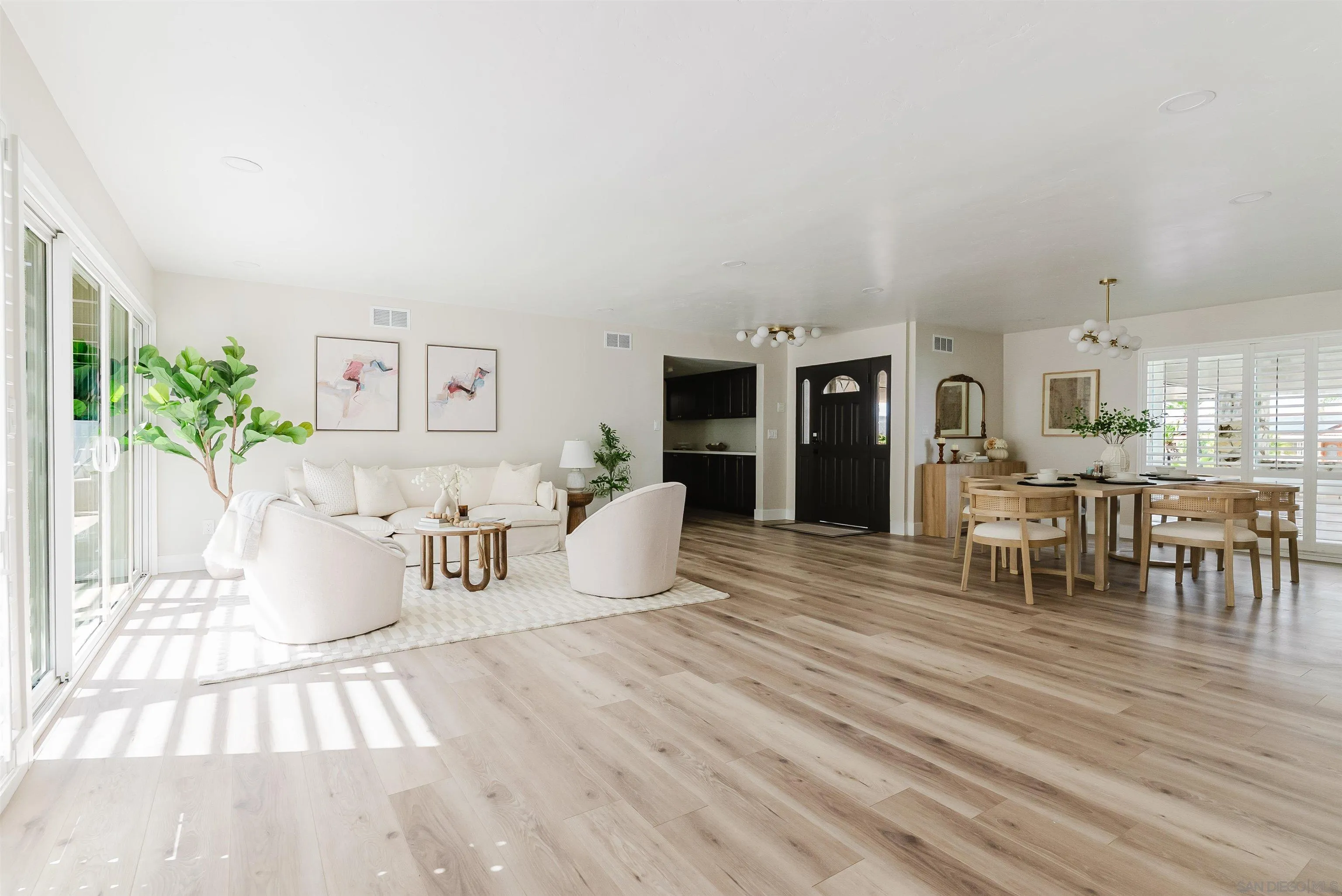 An Edward H. Fickett Original, The Center Piece Design for Grossmont Hills of La Mesa, this rare Edward H. Fickett home captures not only the elegance of Mid-Century Modern architecture both in the main house but also in the ADU/Cabana. The main residence offers a 4 bed 3 bath open floor plan of refined space totaling over 3,100 sqft, featuring custom Cabinets throughout, designer inspired lighting, flooring, Chef's Kitchen, expansive family room with open beam ceilings, and luxury. 2 water features both in the front and backyard as Fickett inspired to bring the outdoors inside. Open your back doors to enjoy the feel of the custom backyard from your living room couch. Perch high is Fickett's designer ADU with gourmet Kitchen, 1 bed 1 bath, family room and retreat. Whether you're enjoying your morning coffee bathed in soft eastern light or entertaining guests against a dramatic evening backdrop, this property is endlessly inspiring. Inside, Fickett's hallmarks are open-beamed ceilings, clean horizontal lines, and seamless indoor/outdoor flow. A classic rock fireplace anchors the living room, while sliding glass doors extend the interiors out to a patio and landscaped terrace. The House has been highly updated with care, balancing functionality, luxury while maintaining High respect for Fickett's mid-century character. Outdoor living is at the heart of this home. The Grossmont Hills neighborhood is one of La Mesa's most prestigious enclaves To own a home designed by Edward H. Fickett is to own a piece of history. To own one of his Center Pieces Rarely comes in a lifetime.