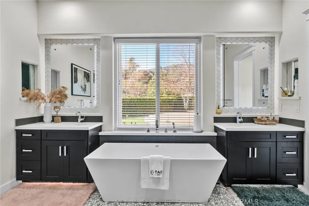 Discover this exceptional single-story estate located in the prestigious Chanteclair neighborhood of Claremont, tucked away on a quiet cul-de-sac surrounded by custom homes and mature landscaping. Built in 2001 and freshly painted inside and out, this rare residence offers soaring ceilings, refined architectural details, and a grand yet comfortable living environment. The thoughtfully designed floor plan features 5 spacious bedrooms, 4 bathrooms, a private office, and a large bonus room. Elegant formal dining, expansive living and family rooms with fireplaces provide ideal spaces for both everyday living and entertaining. The gourmet chefs kitchen is equipped with premium Thermador appliances, including a 6-burner gas cooktop, oven, warming drawer, built-in refrigerator, wine refrigerator, dishwasher, and hood, along with a GE microwave. The luxurious primary suite offers a spa-inspired bathroom with quartz vanities, a soaking tub, oversized shower, and a walk-in closet. The resort-style backyard is a private retreat, showcasing a Pebble Tec pool and spa with waterfalls, a decorative fountain, and a covered patio with a fully equipped outdoor kitchen featuring a BBQ, bar seating, two refrigerators, and a dishwasher. Additional highlights include 45 fully paid-off solar panels with 2 battery storages (2025), a state-of-the-art 13-camera smart security and alarm system (2025), dual central A/C systems, a gated driveway, four-car garage, upgraded irrigation system, exterior architectural night lighting, low-maintenance landscaping, and scenic mountain views. Conveniently locat