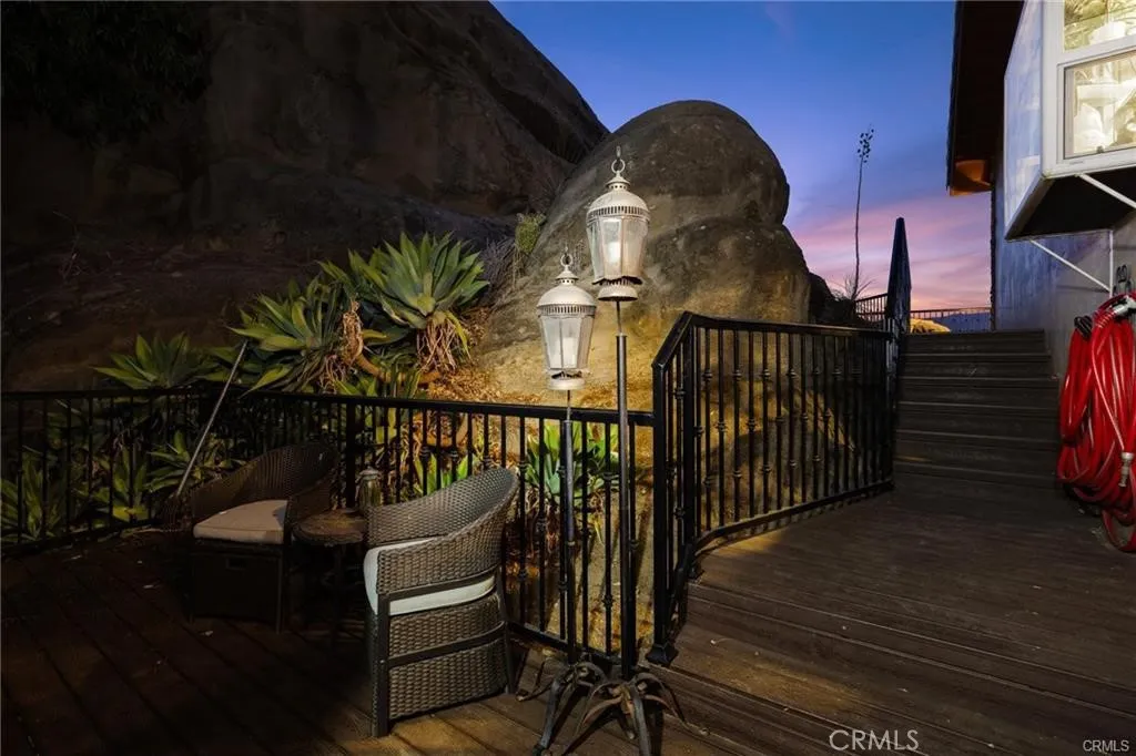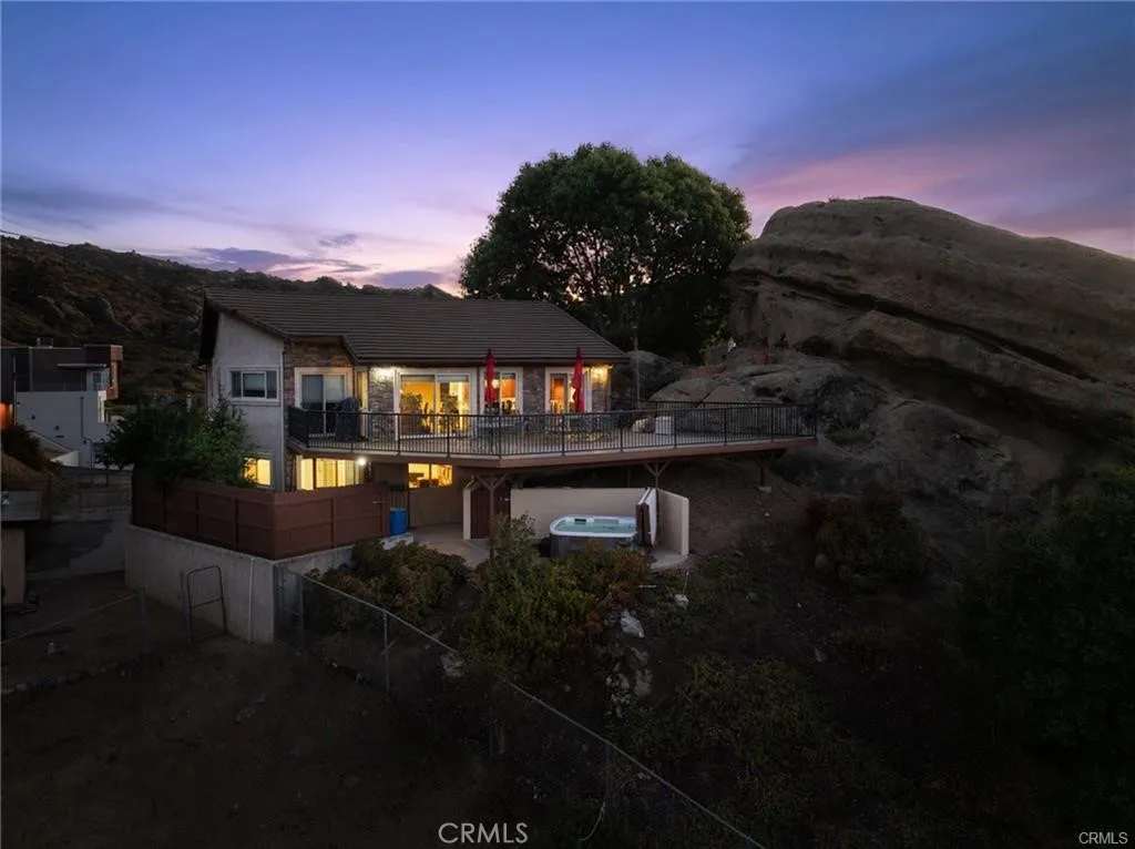 Warm and Welcoming Santa Susana Knolls Custom Home with Magnificent Views! This beautiful and unique custom home was designed to maximize breathtaking views atop the charming Santa Susana Knolls neighborhood. Enter into a light & bright living room graced by a rustic fireplace and views to the dining room, gourmet kitchen and family room beyond. A secluded sitting area, shaded by the majestic boulder, offers a peaceful & meditative moment to relax and unwind. The remodeled kitchen is a chefs dream with stainless appliances including an oversized gas range, 2 ovens, refrigerator, trash compactor, microwave, wine refrigerator and warming drawer. Granite counters, pendant lights, a custom backsplash and lovely garden window above the sink enhance the beauty of this heart of the home. The large pantry with pullout drawers, self-closing cabinetry with custom designer accents and center island with additional seating add practical benefits enjoyed by all. The den/family room is steps away and offers a wet bar and very flexible space for a home office, media room, game roomyou decide! Sliding glass doors welcome you onto the spacious rear deck with the most stunning views in every direction. An ideal location for entertaining guests, the deck offers space for many to sit, dance, or play. The 2 spacious secondary bedrooms each have a charming balcony with superb mountain and sunset views. The hall bath has been remodeled with custom cabinetry, stone counters, dual sinks & soaking tub. The primary suite is located at the end of the hall offering added privacy, a large walk-in closet
