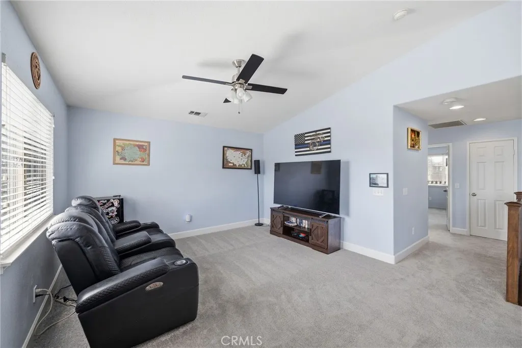 Energy-efficient living meets modern comfort in this beautifully upgraded home, featuring a fully paid solar system and a Tesla Powerwalla rechargeable lithium-ion battery that stores energy from solar or the grid, providing reliable backup power and greater energy independence. Designed with sustainability in mind, the property also includes artificial turf and a water-efficient drip irrigation system for low-maintenance outdoor living. This spacious 4-bedroom, 3-bathroom home is nestled in a highly desirable neighborhood with convenient access to the 91, 71 and 15 freeways, making daily commuting a breeze. Step inside to a thoughtfully designed floor plan with defined living spaces that balance comfort and functionality. The home offers a 3-car garage, impressive 12x50 RV/boat parking, and an extended driveway with room for up to four additional vehiclesideal for those who need extra space. The kitchen features, granite countertops, stainless steel appliances (including oven, microwave, and dishwasher), and a built-in wine coolerperfect for entertaining. The main level also includes a bedroom and full bathroom, ideal for guests or multi-generational living. Upstairs, a generous loft/bonus room provides flexible space for a home office, media room, or play area. All bedrooms are well-sized and equipped with ceiling fans. The primary suite offers a relaxing retreat with a walk-in closet, dual vanities, a separate shower, and a soaking tub. Additional highlights include dual-zone A/C and heating for personalized climate control on each level. The fully paid solar system pair
