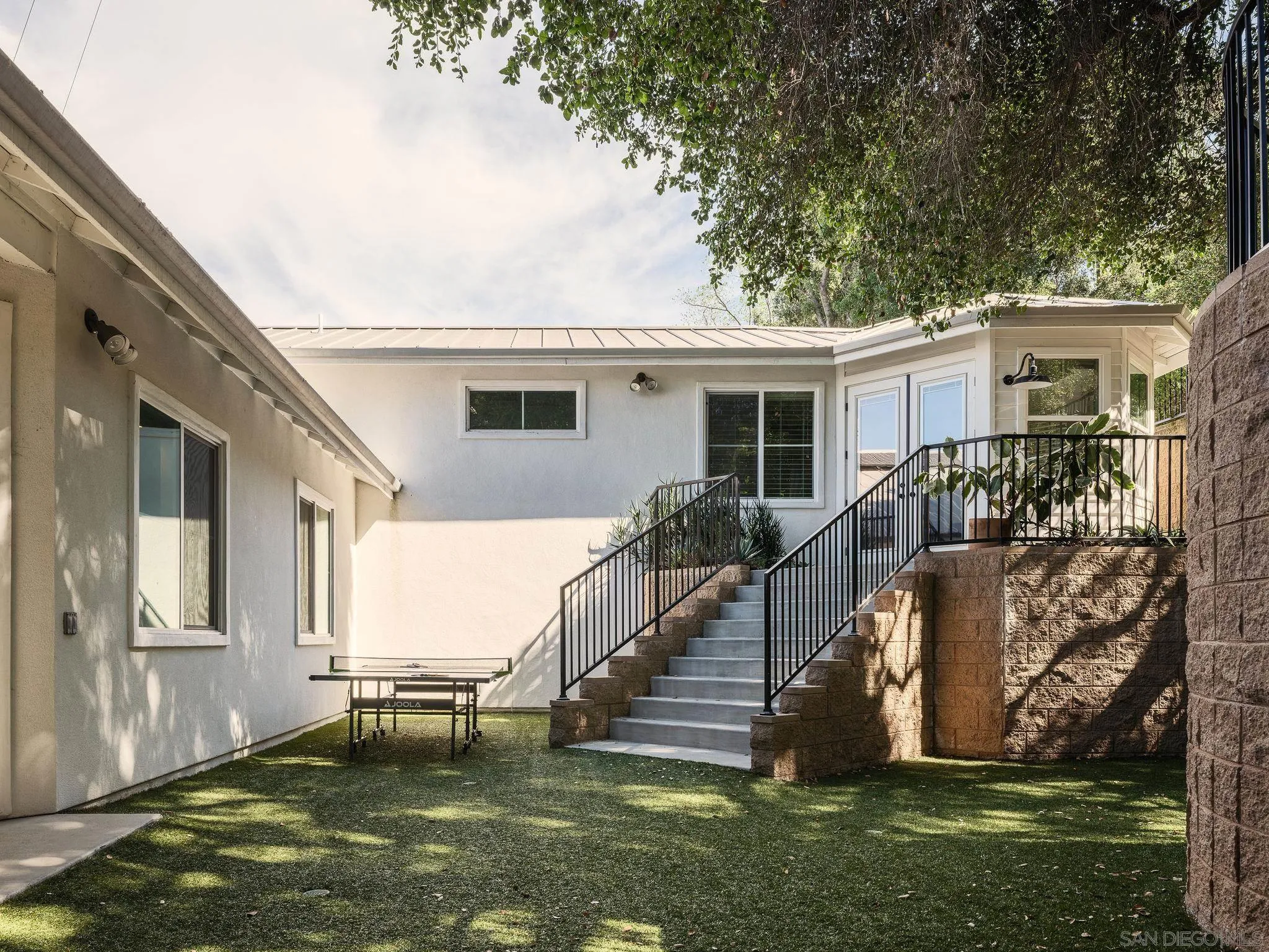 FIRST TIME ON THE MARKET: A property that often leaves its visitors breathless, this contemporary home hosts an array of cozy spaces as well as large, high-ceiling'd rooms fit to host large gatherings for family and friends. Nestled amidst .68 acres of mature native oaks and pecan trees as well as curated plantings, 9777 Grosalia is located on one the most amazing blocks in all of La Mesa and Mt. Helix. Engaging Sierra Vista to the south, the backyard hosts historic remains of a water tank that now hosts a a family pickleball court with amazing views to the north. The owned solar array faces south atop a standing-seam metal roof. Additional rooms include a converted fourth bedroom, office and loft.