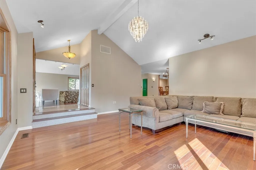 Stunning Gated Chatsworth Estate offering nearly 5,000 square feet of refined living space on a sprawling private lot that may appear modest from the street but unfolds into an exceptional retreat designed for family living and entertaining. Extensively remodeled with a significant addition completed in 2016, this impressive 5-bedroom, 5-bathroom residence blends timeless design with thoughtful modern updates. Beyond the custom front doors, soaring ceilings, rich mahogany wood flooring, and designer finishes create a striking yet inviting atmosphere. The formal living room is filled with natural light, while the elegant dining room opens to a serene open-air atrium with a tranquil water feature, offering a unique indoor-outdoor experience. Designed for everyday living and entertaining, the gourmet chefs kitchen features Viking professional appliances, granite countertops, an oversized center island, double ovens, dual sinks, instant hot and cold filtered water, and a sunny breakfast nook. The kitchen flows seamlessly into the expansive family room complete with a custom wet bar, fireplace, multi-zone whole-house audio system, surround sound in the entertainment area, and sliding doors leading outdoors. A versatile first-floor private suite with separate entrance, full bath, and walk-in closet offers flexibility for extended family, guests, or live-in assistance. An additional exercise room adds further functionality. The entertainers backyard includes a fully equipped outdoor kitchen with built-in BBQ, cooktop, ice drawer, and refrigerator/freezer, along with terraced plant
