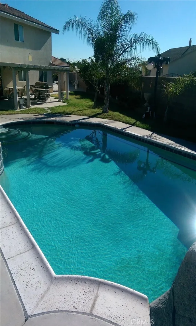 Summer is coming! Beat the heat with this beautiful 4 bedrooms and 3 bathrooms home in the city of Fontana. HUGE lot, over 10k sf consisting of cement, artificial turf and beautiful custom pool with jacuzzi. Kitchen has a HUGE walk-in pantry. Newer AC unit, about 1.5 years old. Built-in cabinets in master closet, laundry room and garage. Home has leased solar panels and backup tesla batteries (3) buyer to assume lease. Also has LOTS of smart home upgrades. No HOA and no Mello Roos