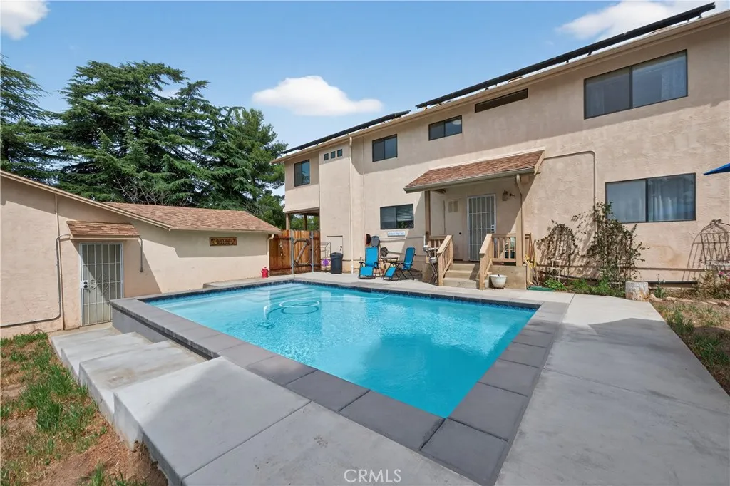 Welcome to this beautifully maintained custom-built home in the peaceful community of Cherry Valley, offering the perfect blend of rural charm and modern convenience. Situated on a spacious 0.63-acre agricultural-zoned lot, this versatile horse property is ideal for those seeking room to live, work, and play. A wrought iron front gate welcomes you onto the property, where ample space accommodates RVs, boats, and recreational toys with ease. Designed for both comfort and functionality, the home features 4 bedrooms, 2 bathrooms, and an open floor plan concept enhanced by plantation shutters and abundant natural light. A dedicated den/office provides flexibility for remote work or creative pursuits. Step outside to enjoy true outdoor living with a saltwater pool, perfect for relaxing or entertaining, along with a balcony offering scenic mountain views. Equestrian and animal enthusiasts will appreciate the horse corral, dog/animal run, and ample space for additional homesteading opportunities, start gardening in any type of weather with your Yardistry greenhouse and start your small-scale farming. Additional highlights include a detached 2-car garage with a workshop or hobby room, a storage shed, EV charging capability, and solar power for energy efficiency. Whether you're looking to embrace a homesteading lifestyle or simply enjoy the tranquility of wide-open spaces, this unique property offers endless possibilities.
