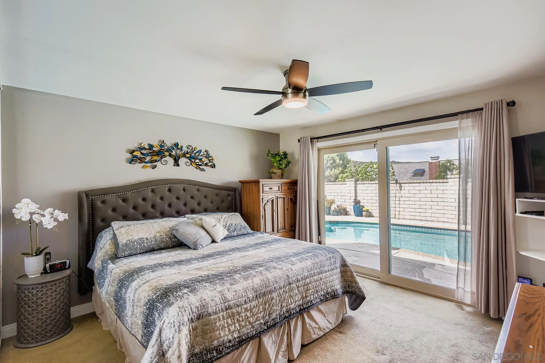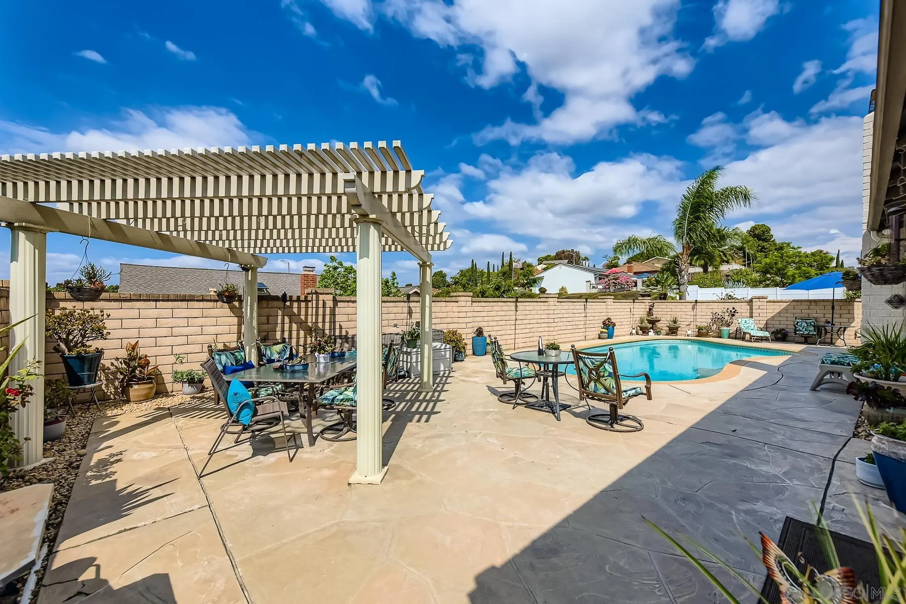 Welcome Home ~ Single-story remodeled Poway home ~ solar serves the house & pool. Bright/Light/White kitchen~ quartz counter tops, stainless appliances, tile floors, skylight, & cathedral ceiling, plus a bonus/Family room open to the kitchen & privacy shutters. Living room features a tiled fireplace (gas/wood). Updated baths, luxury-vinyl flooring, new doors & knobs, lighting, ceiling fans, electrical outlets, closet doors & built-ins. guest bedroom includes a built-in Murphy bed. Finished garage, built-ins, 220V. Sparkling pool, Mountain View, mature low-maintenance landscaping. NO Mello Roos, No HOA, Heart of Poway, award-winning PUSD, Poway Lake, Parks, trails, shopping, & dining nearby.