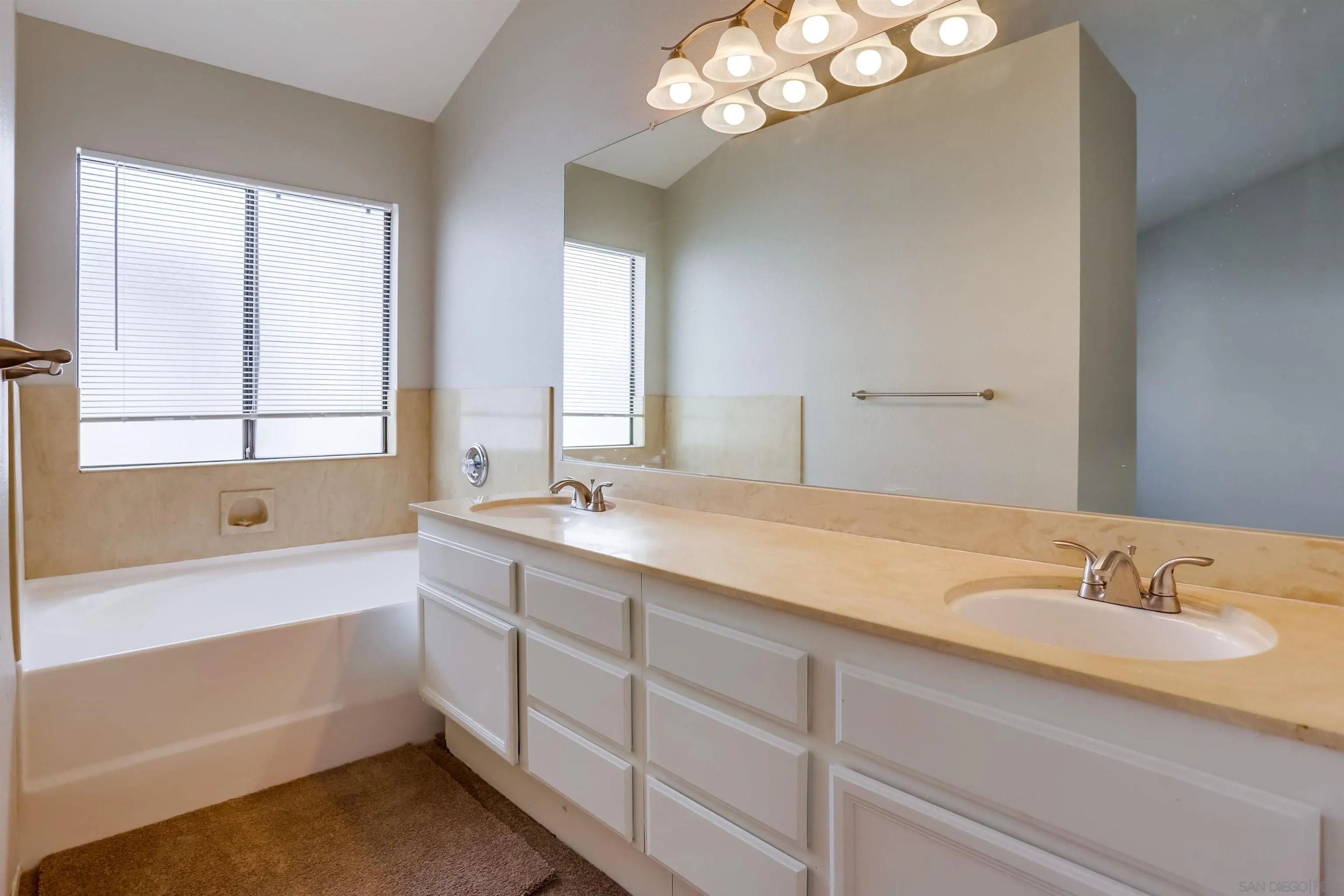 At 1618 SqFt this is virtually a house with 3 bedrooms 2 1/2 bathrooms a garage and assigned additional parking. And you don't need to do any exterior maintenance because the HOA takes care of it all. Two beautiful sparkling pool with spas. All this and more in this gated and secure community. What more you ask? 1. totally freshly painted 2. stairs and upstairs brand new carpet 3. new window treatments throughout 4. new dishwasher 5. newer heating and air conditioning system along with all the duct work 6. newer luxury vinyl flooring downstairs - looks great and is super easy to care for 7. whole house fan 8. Real usable fireplace 9. Patio and back yard with a producing navel orange tree for fresh OJ in the summer and 10. even new medicine cabinets. A very private location for this home too. Super little foot traffic and no vehicle traffic or noise as one might experience in other parts of this well maintained complex.