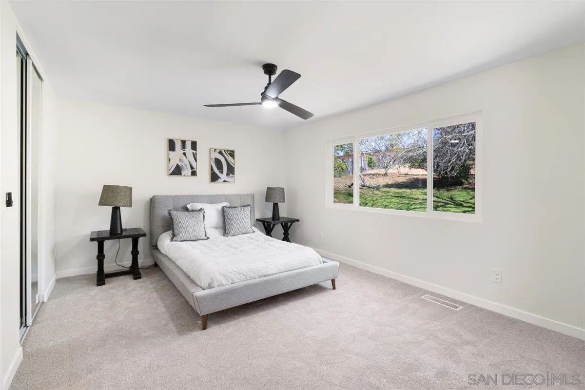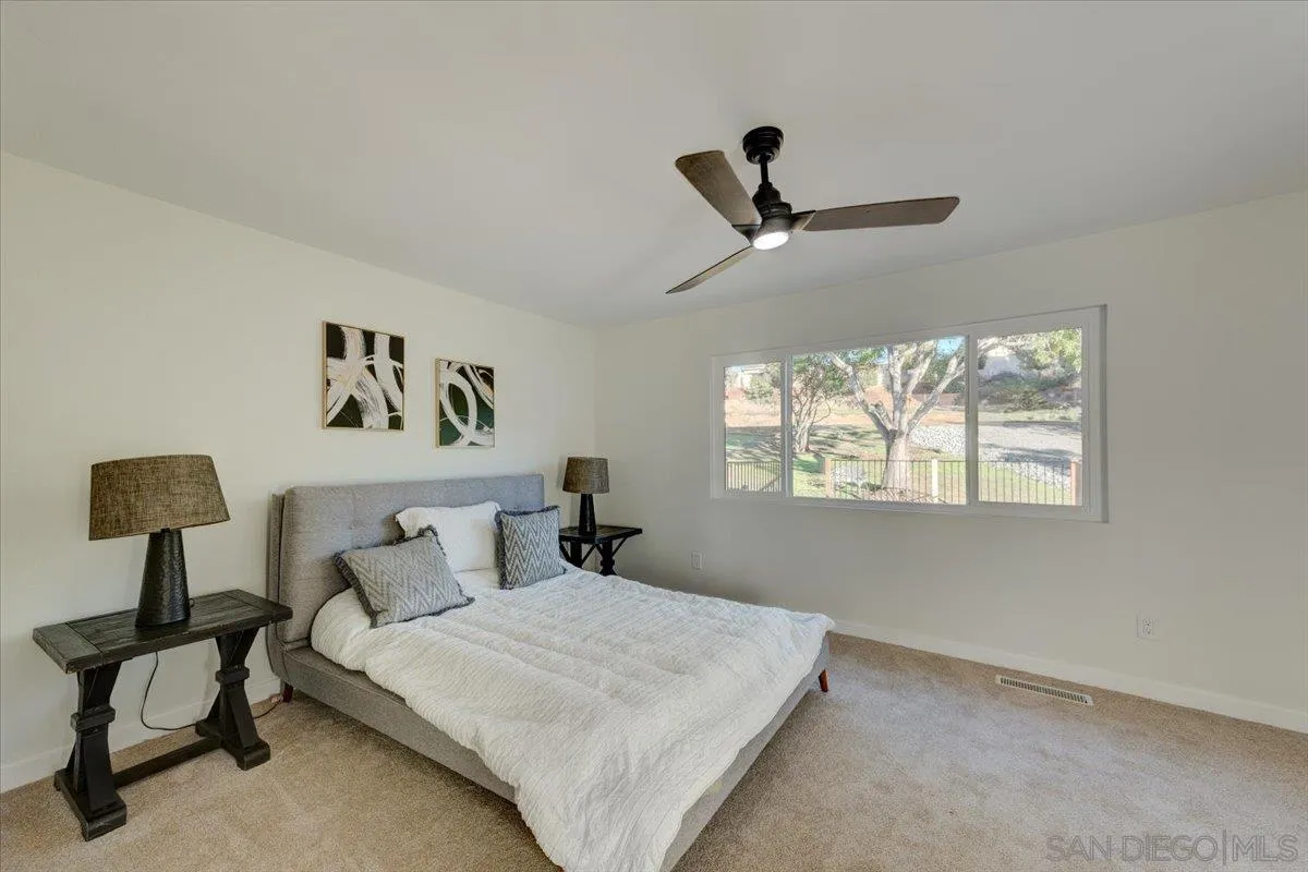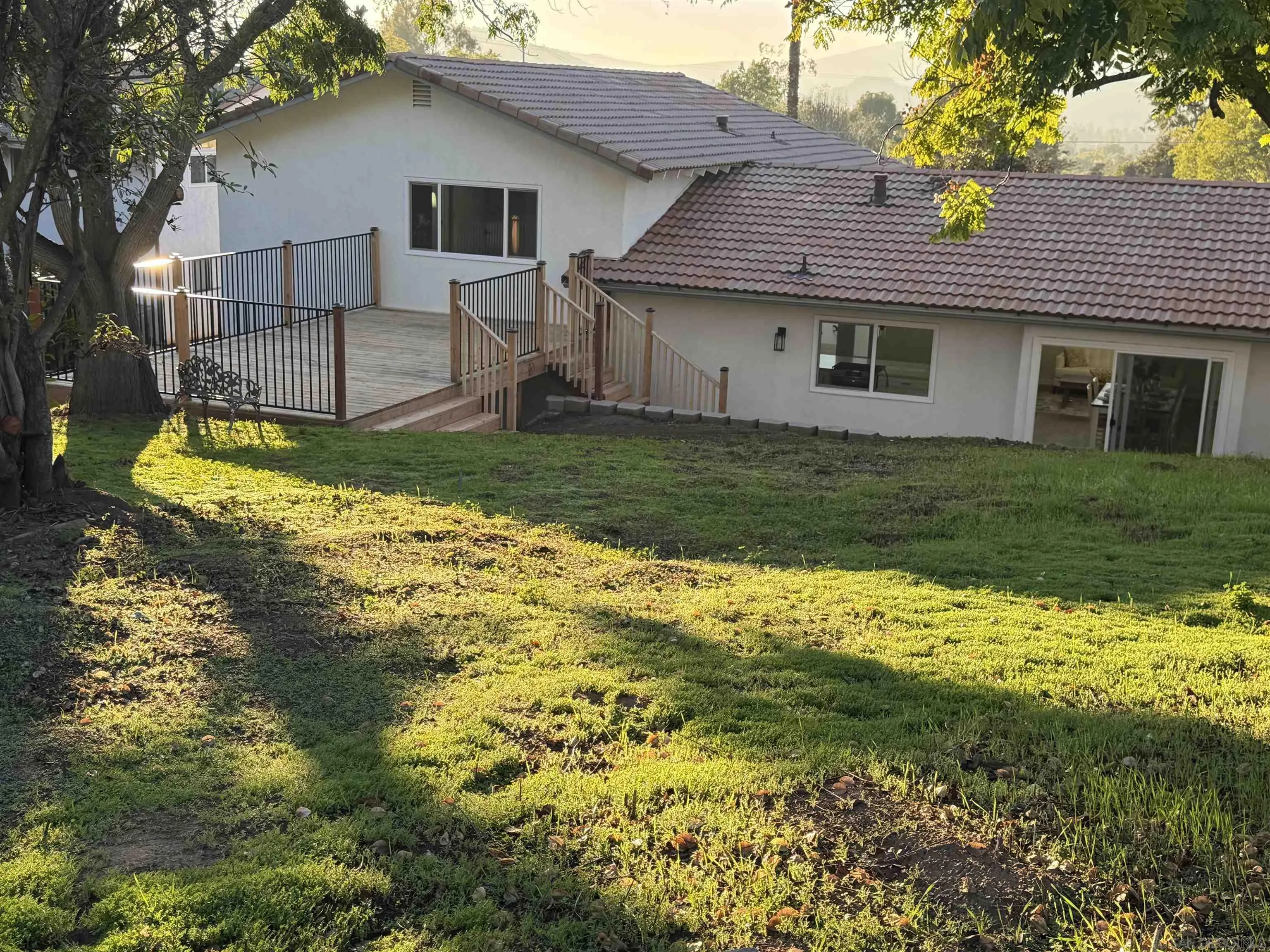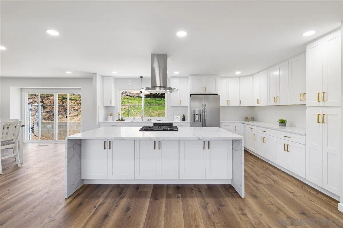 Nestled in the sought-after Southwestern neighborhood in Escondido, this extraordinary residence boasts 5 large bedrooms, 3 bathrooms, and 2,224 square feet of comfortable living on a .53-acre lot, ideal for families who value entertainment, space & privacy. Complete new renovation including new extensive backyard deck perfect for entertaining or backyard barbecues, roof, new dual paned windows and sliding glass doors, cabinetry, quartz counters throughout, modern fixtures and stainless steel appliances. The mid-level spacious living area hosts a chef's kitchen with a huge island, stainless steel appliances, white shaker cabinets and quartz counters. The upper level has 3 bedrooms, two of which front onto an upper deck with space for outside dining while watching gorgeous sunsets. The lower level has 2 bedrooms that could host a separate income producing ADU and/or media room and extra bedroom. A 3-car garage adds convenience with lower level house access & driveway spaces for 3+ cars. The meticulously kept yard is a tranquil oasis, adorned with mature shade trees and a large level pad ready for a Playground, RV parking, Pool, Horses/Equestrian use or build an added ADU. The front yard has Orange, Tangerine & Meyer Lemon fruit trees. This home is perfectly positioned near Lake Hodges, Del Dios Highlands County Preserve & Daley Ranch trails, offering many opportunities for hiking, biking & outdoor adventures. Dixon Lake is 8 miles away for boating and fishing. You can enjoy walks to favorite restaurants & shopping.