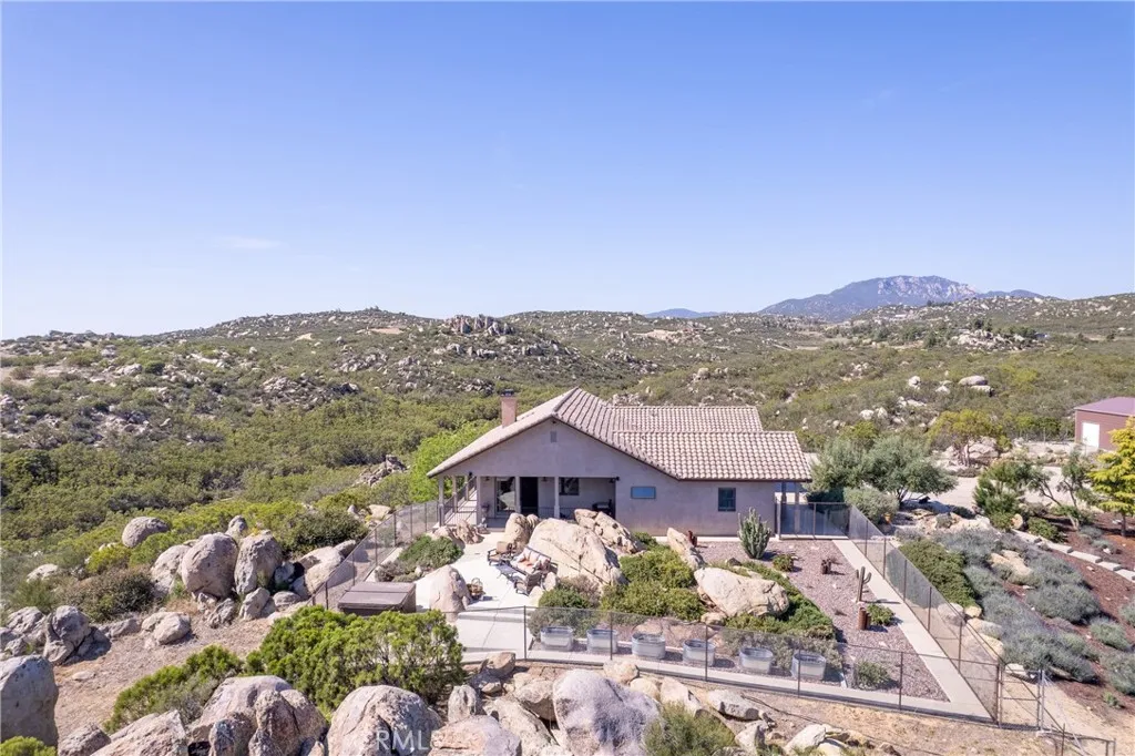 Two custom homes- (GUEST HOUSE) on 19.97 acre lot in Aguanga! Great access/location close to highway 371. Both homes have FULLY upgraded finishes throughout! 2 workshops one for each home plus standard garage on main home. For entertaining you will love the inground pebble tech pool and pool house with bathroom and built in BBQ area. This property is surrounded by county preserve on 3 sides for immense privacy. The main home has 3 bedrooms and 3 bathrooms with an elevated location to best enjoy the gorgeous views of mountains, sunsets, valley, lake, and city lights. Large great room concept with fireplace in the living room. There are 2 master suites, tile floors throughout the home, Anderson doors and windows (triple pane windows). Kitchen has Kraft Maid custom cabinetry, beautiful granite countertops with backsplash. Outside there is a wrap around porch along with patio's, Jacuzzi, 2 firepits. Tasteful and professionally maintained landscaping awaits you outside and around the pool area. There is a 2 car garage and 1500 SF workshop. There is fencing and multiple cross fencing around the improved areas of this property, the entry has automatic gates one for each home. The guest home/ ADU is a distance from main home and approx. 1500 SF with 2 bedrooms and 2 bathrooms, open great room with beautiful upgraded kitchen, wood stove in living room. This home has vinyl flooring, quartz countertops including an enormous island in the kitchen, fully upgraded bathrooms. There is a 4 car garage/workshop with second home, outdoor alumawood covered patio and RV hookups. The pool area i