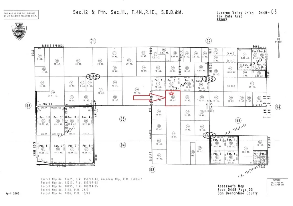 This is an amazing opportunity to own over 10 acres in the peaceful and scenic Lucerne Valley, located within the Lucerne Valley Unified School District. This spacious parcel is situated along Pearl Road, approximately 1 mile north of Highway 247 and 1 mile east of Camp Rock Road, offering easy access while maintaining privacy and wide-open space. Enjoy panoramic desert and mountain views, stunning sunsets, and clear skies. This land allows for a variety of potential uses. Zoned LV/AG ; Size: 10 Acres ; APN# 0449-033-37-0000 ; Coordinates (SW Corner): 34.451707, -116.837217 ;