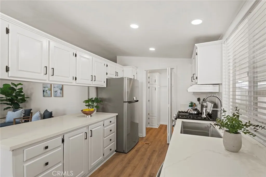 Discover unparalleled luxury living in this meticulously appointed 3-bedroom, 2-bathroom manufactured home, ideally situated within the prestigious gated community of Huntington Beach by the Sea, offering immediate proximity to California's renowned coastline while providing access to world-class resort amenities just minutes from Huntington Beach's pristine shoreline and iconic pier, with walking distance access to Surf City's premier shopping and dining establishments through a secure gated community entrance with controlled access and convenient carport accommodating multiple vehicles. This exceptional property features a thoughtfully designed open-concept floor plan maximizing natural light, showcasing a professional-grade galley kitchen with contemporary stainless steel appliance package, premium quartz countertops, extensive cabinetry and drawer storage solutions, and abundant natural lighting, complemented by luxury hardwood laminate flooring throughout, strategically positioned bedrooms ensuring optimal privacy, a spacious master suite with private en-suite bathroom, expansive windows creating bright airy living spaces, and a welcoming front porch ideal for enjoying ocean breezes. As a resident of this exclusive community, you'll enjoy unprecedented access to resort-style living amenities including private clubhouse facilities, year-round heated swimming pool and spa, fully equipped fitness center, recreation room featuring billiards, dedicated dog park for pet owners, and 24/7 gated security entrance, all accessible through a monthly community investment of $3,363.