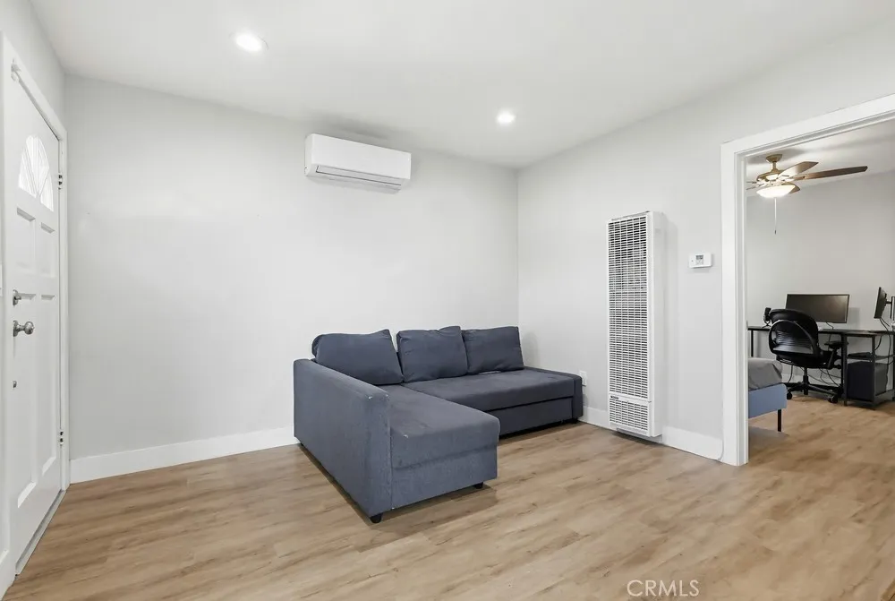 RENT 1 UNIT AND LIVE IN THE OTHER, ready to move in. Two Beautiful units in a quiet neighborhood. Each unit has 1 bedroom and 1 bathroom with plenty of natural light. and its OWN INDIVIDUAL LAUNDRY ROOM.. Both units have water filtration and a softener system. Mini-split AC in each unit. Front patio fake turf. Irrigation system for all the trees. New Roof. The private backyard is bordered with ficus trees that provide a perfect setting for family gatherings and summer barbecues, conveniently located near a shopping center and freeway. Both Units will be delivered empty. ARE YOU A VA BUYER? You may assume the present loan at 2.5% interest rate.