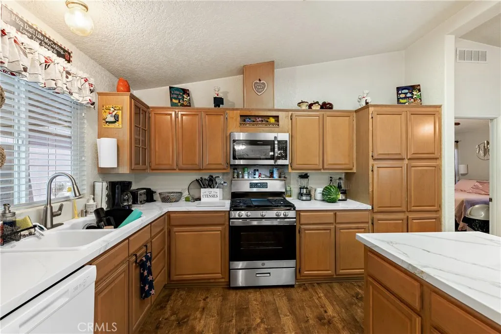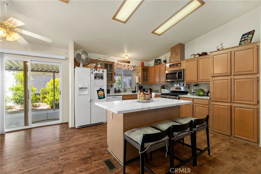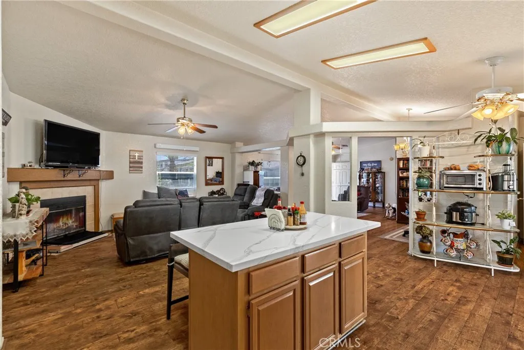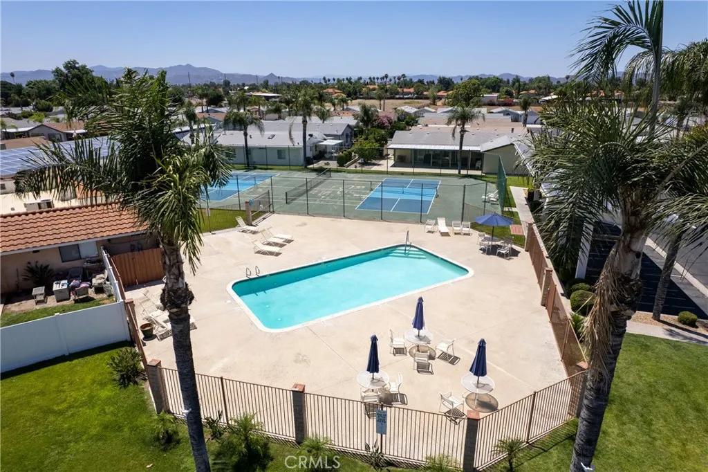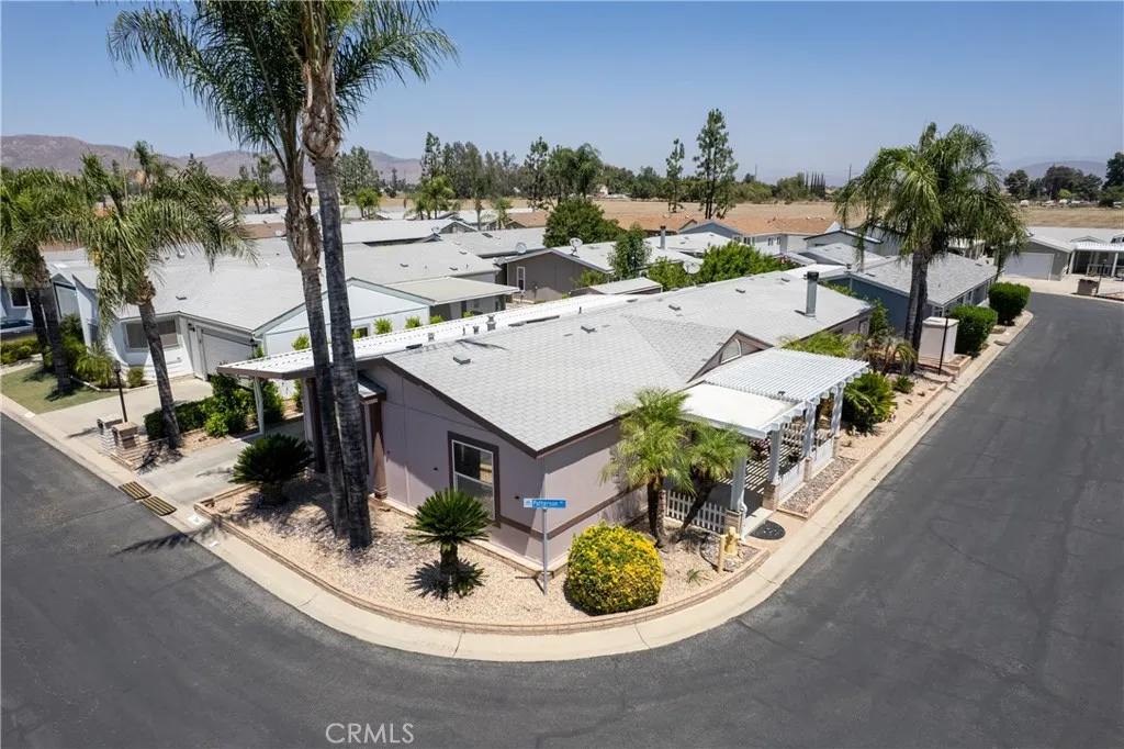 Welcome to the gated 55+ Foothills of Hemet community, where youll find this spacious 3 bedroom 2 bathroom 1,848sqft home on a desirable CORNER LOT, filled with natural light, soaring ceilings, and an OPEN-CONCEPT layout perfect for relaxed living. Step inside to a bright and airy living and dining area that has a modern, elegant feel. The open kitchen features a center island and flows seamlessly into a cozy family room with a fireplace-ideal for entertaining or quiet evenings. The primary suite offers a walk-in closet and en-suite bath with dual sinks, soaking tub, and walk-in shower. Two additional bedrooms with new carpet, a second full bath, and a dedicated laundry room are located on the opposite side for added privacy. Outside, enjoy the added storage of a private shed and the spacious feel of a corner lot. The community features a beautiful clubhouse, two pools, sport courts, and a wide range of social activities. With pet restrictions, low taxes, and affordable lot rent, this well-managed, clean, and friendly park is just minutes from shopping and local amenities.