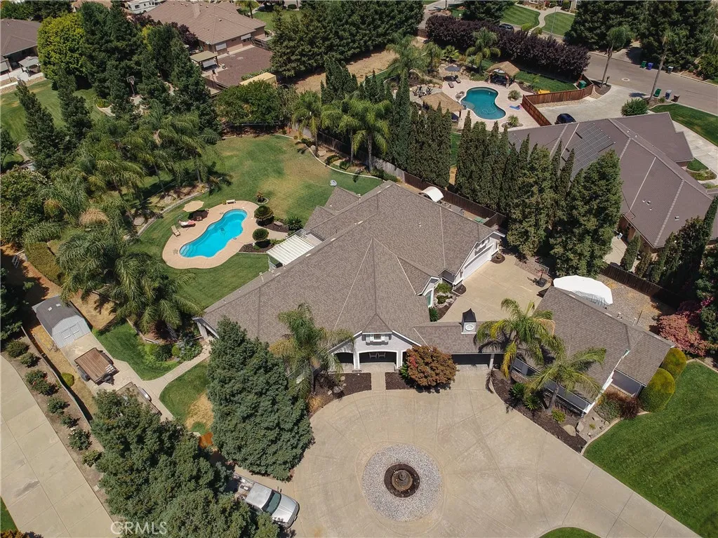 Exceptional McSwain property all nestled on a one-acre lot in a quiet, sought-after neighborhood of Atwater. This expansive estate has a main residence with 4 bedrooms and 3 full baths, 2 half baths, guest quarters, and resort-style outdoor living. Step through the grand 8-foot entrance into a home that boasts custom craftsmanship throughout, including crown molding, tile flooring, plantation shutters, and a seamless open-concept layout. Entertain in style with formal dining and living areas, a spacious family room with a gas fireplace, wet bar, wine fridge, and built-in cabinetryall opening to a large covered patio with surround sound and a park-like backyard. The kitchen features vaulted ceilings, granite countertops, a center island with a 5-burner gas cooktop, Jenn-Air stainless appliances, an oversized walk-in pantry, and a breakfast nook with plenty of natural light. The master suite is a true retreat, complete with patio access, a giant walk-in closet, and a spa-like bathroom with a jetted tub, granite walk-in double rain shower, and dual vanities. Additional bedrooms include a Jack & Jill setup, oversized closets, and even a versatile fourth bedroom that can function as a loft or game room with its own vaulted ceiling and attic storage. The detached guest unit features a private entrance, full bathroom, granite sink, walk-in closet, and dedicated water heater. Step outdoors to your personal oasiscomplete with an inground fiberglass pool, stamped concrete, mature landscaping palms, and a fully equipped outdoor kitchen with BBQ, fridge, and stove. Additional amenities
