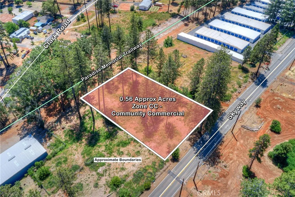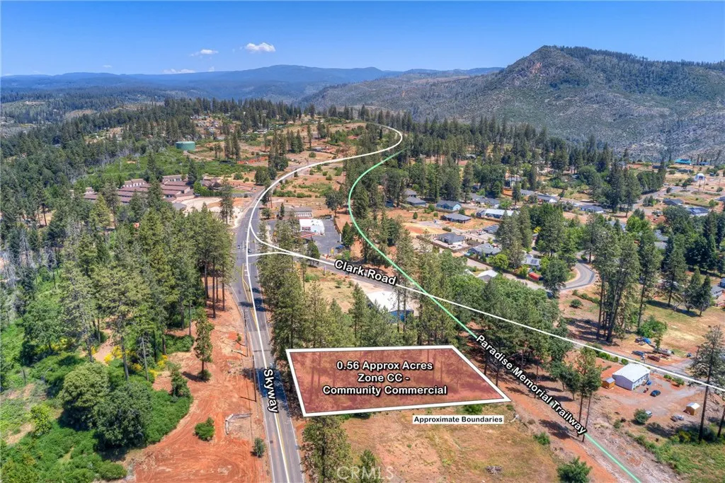 Opportunity awaits with this undeveloped parcel zoned Community Commercial (CC) along Skyway in Paradise. Please note: 9142 Skyway is not an officially assigned street number by the Town of Paradise but is used here for reference only. This property backs to the Yellowstone Kelly Heritage Trailway, a paved pedestrian and cycling path that runs through town, and offers excellent potential for neighborhood-serving commercial development. Neighboring parcels are also available for a larger footprint.