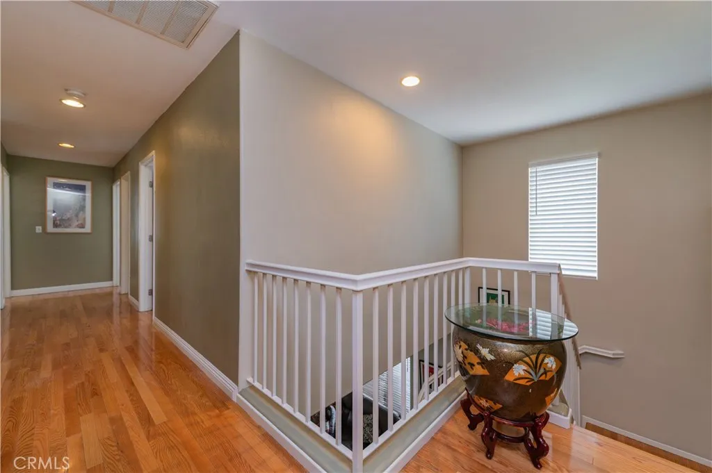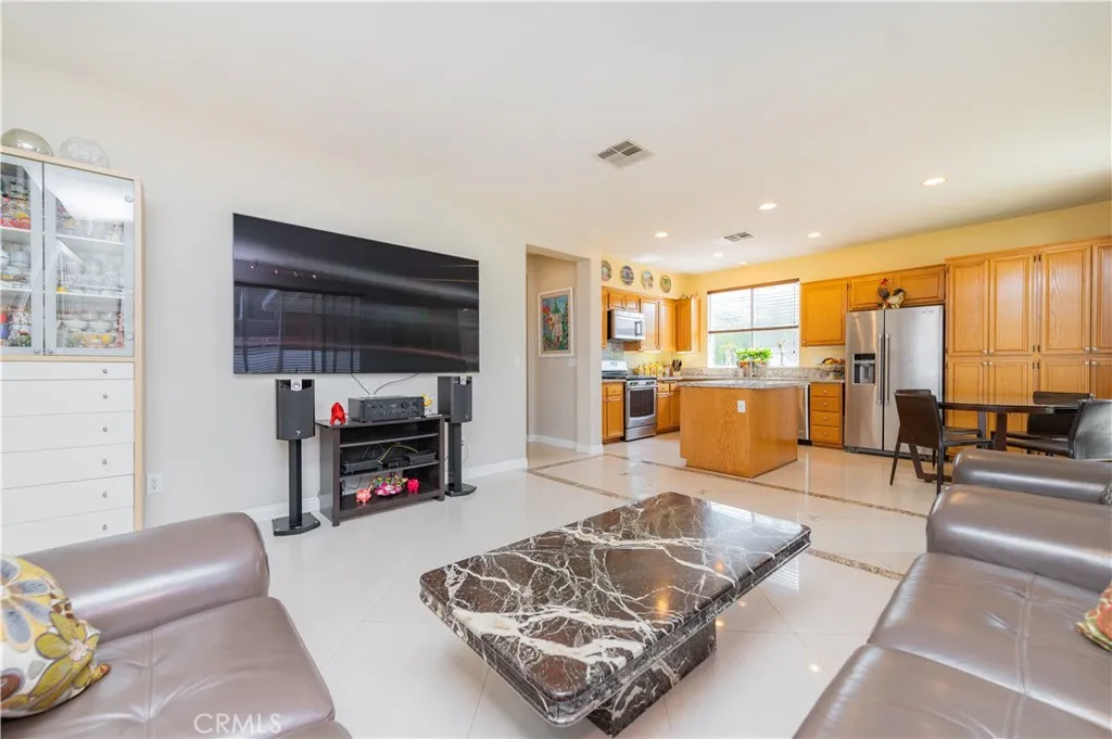 Beautifully maintained 4-bedroom, 2.5-bathroom single-family home situated on a spacious corner lot with great curb appeal and a welcoming front porch. This bright and airy home features marble tile flooring throughout the first floor and warm wood flooring from the stairs through the entire second level. All four bedrooms are located upstairs, offering privacy and comfort for the whole family. The upgraded gourmet kitchen with granite countertops, a large center island, built-in microwave, stainless steel appliances, and custom cabinetry. The open-concept layout connects the kitchen seamlessly to the family room, while a formal dining room provides an elegant space for entertaining. Newly exterior paint, direct access 2-car garage, no HOA fees, no Mello-Roos. Located within walking distance to Zacatecas Park and offering easy access to the 210, 605, and 57 freeways. Bright, stylish, and move-in readydont miss this exceptional opportunity!