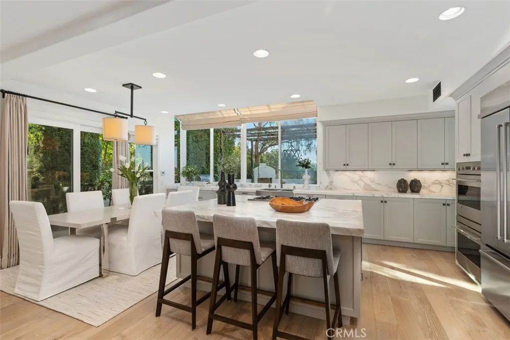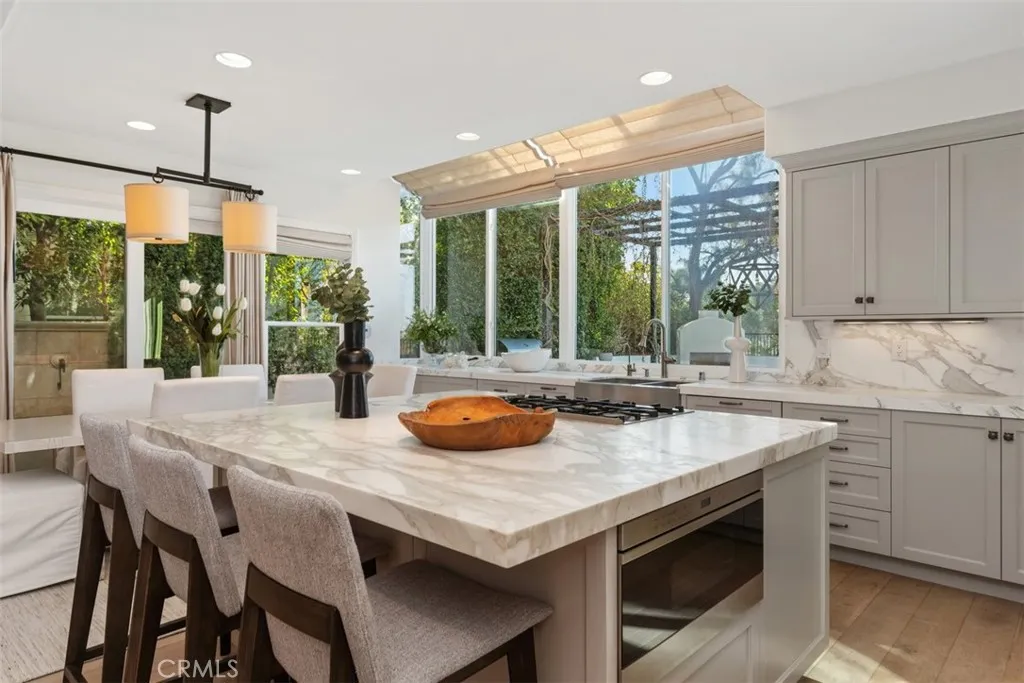 Lease a luxury fully furnished, Hillside sanctuary with forever sunset views. Life unfolds gracefully in this private view residence, positioned at the end of a cul-de-sac in prestigious Marina Hills. Set on a single-lined street with no direct neighbors front or back, the property commands an exceptional vantage point, facing open green space and backing to expansive western views that capture sunset colors over rolling hills. Arrive on a gated stone path to the covered entry and new oak double doors. Inside, a double-height foyer sets the tone for the home's grand proportions. The interior blends luxury amenities and updates with a soothing natural palette, including new oak floors, linen shades throughout, and water features off the entry and kitchen, inviting calm and relaxation in every space. The formal living room, anchored by a stately fireplace, opens to a dining space that captures miles of natural vista through generous windows. The chefs kitchen attests to both form and function, featuring marble countertops and new premium appliances. The open concept joins seamlessly with an eat-in dining area and family room, extending naturally to outdoor living spaces. The backyard becomes an extension of the home's living area, featuring an extensive hardscape with outdoor fireplace, BBQ, and a jacuzzi, ideal for evening entertaining against the backdrop of sunset. Upstairs, vaulted ceilings enhance three generously sized bedrooms, including a primary retreat with a sitting area and spa-inspired ensuite with double vanity. A fourth bedroom is on the main level. This enviab