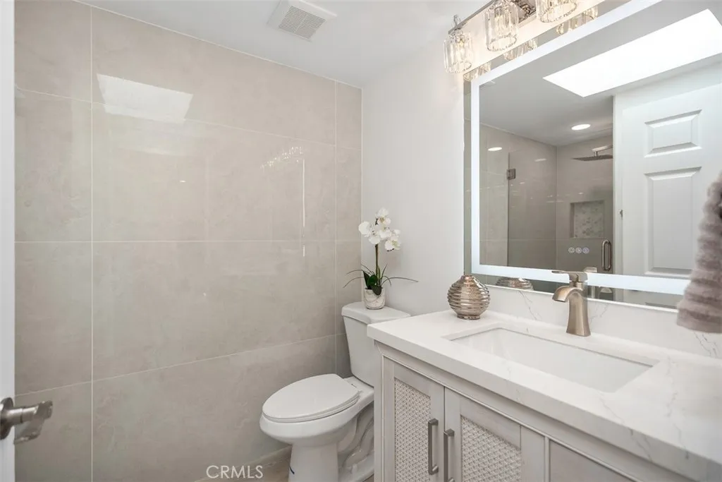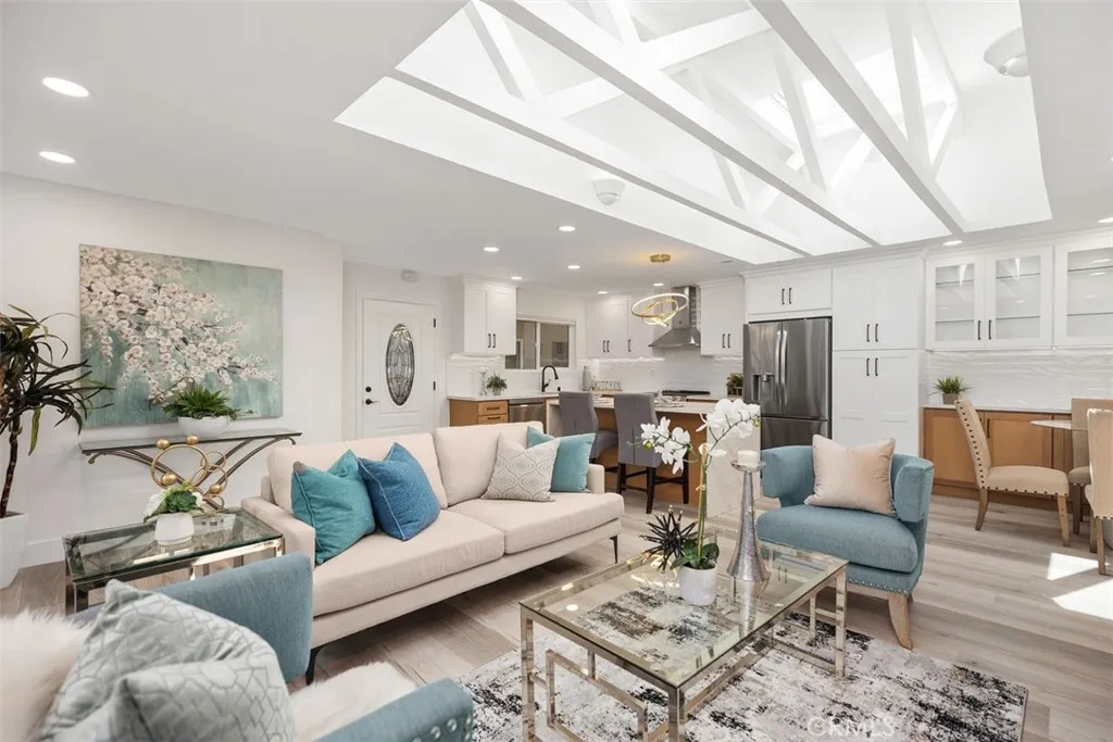 Stunning Completely Remodeled "CASA VISTA" Home! Welcome to this luxurious, move-in-ready home, meticulously remodeled from the studs up to seamlessly blend modern comforts with sophisticated design. Additionally, this property has been repiped, including both electrical and plumbing systems. From the moment you step inside, you'll be greeted by an abundance of natural light and a breathtaking media/fireplace wall that creates an inviting and serene ambiance. The skylights in the living room and two bedrooms are amazing, as they enhance the space. Very well thought out. The gourmet kitchen is a chef's dream, featuring a waterfall-style island with quartz countertops and top-of-the-line appliances. Additional highlights include built-in storage, central heating and air conditioning, a stackable washer and dryer in the hall closet, an enclosed patio off the living room, and an additional patio accessible from the guest bedroom. This beautifully remodeled master suite offers a luxurious retreat, complete with an en-suite bathroom featuring a large, elegant shower. Enjoy the convenience of a spacious walk-in closet and the warmth of beautiful laminate wood floors. This serene space is perfect for relaxation and comfort. Along with all the excellent features of this stunning remodel, there is no one above or below you, and easy access to parking. This home offers ultimate convenience and privacy. An additional feature is a large walk-in closet upon entering. Embrace an unparalleled lifestyle with a 27-hole championship golf course, 9-hole executive par three courses, tennis cour